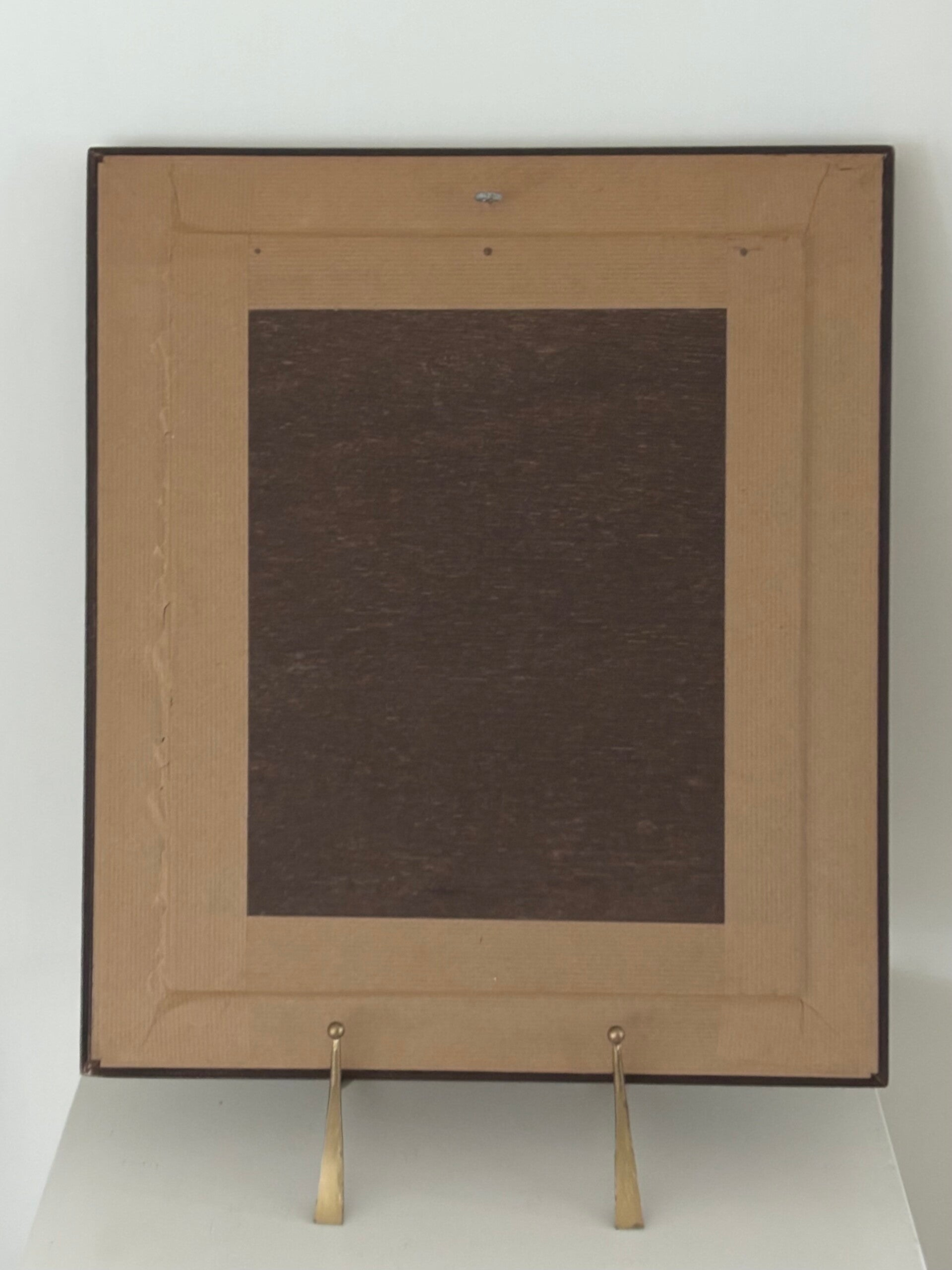 Painted still life on panel, presented in an elegant frame with gilded details. A charming artwork in lovely vintage condition. Dimensions including frame: 43.3 x 37.3 cm.