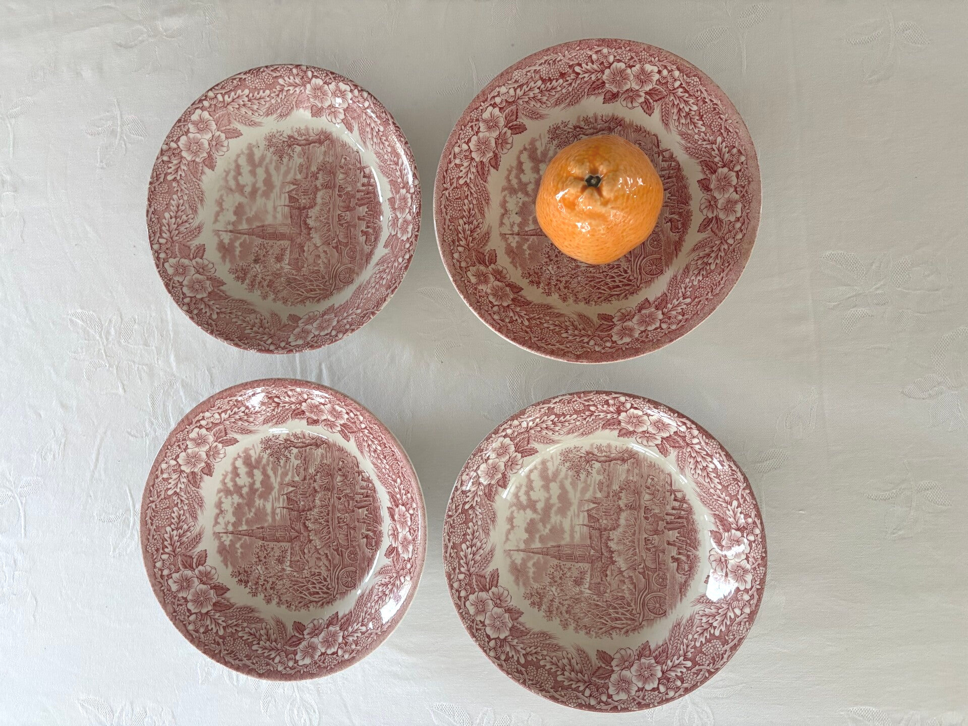 Elegante set van vier grote Ironstone kommen van Broadhurst Staffordshire, opgericht in 1847. Klassiek en tijdloos, met een diameter van 20 cm. Mooi als serviesstuk of decoratief element op tafel.