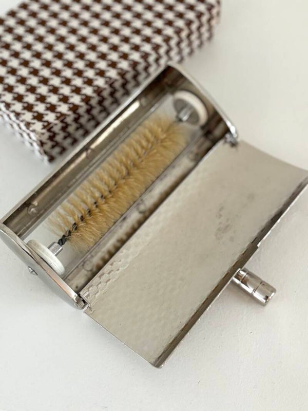 Een elegante tafelborstel in tijdloze uitvoering. Een verfijnd en praktisch accessoire voor een stijlvol gedekte tafel. In mooie vintage staat.