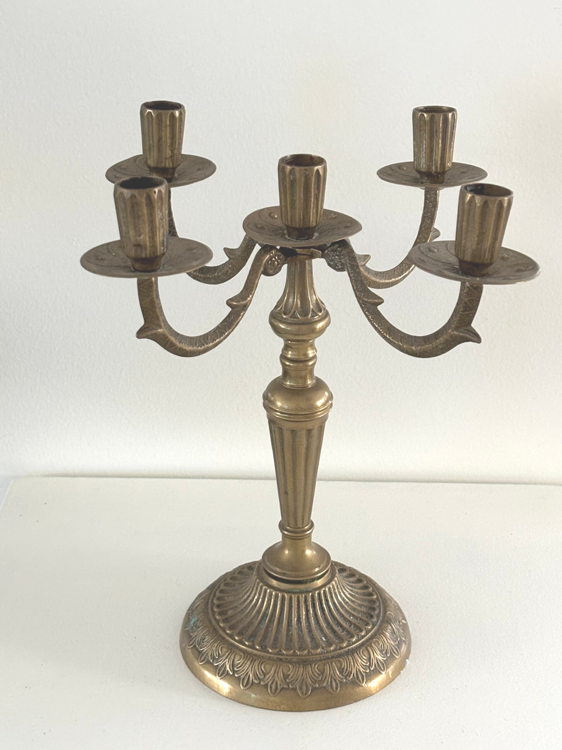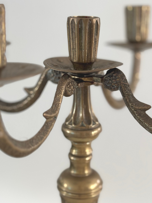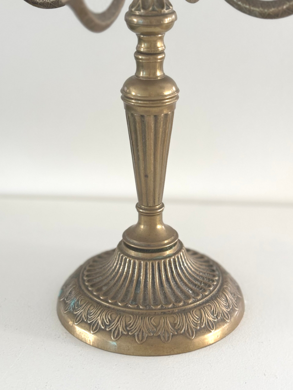 Een antieke kandelaar met verfijnde details en een elegante uitstraling. Een sfeervol object dat direct karakter toevoegt aan elk interieur. Afmetingen: 30 x 27,5 cm.