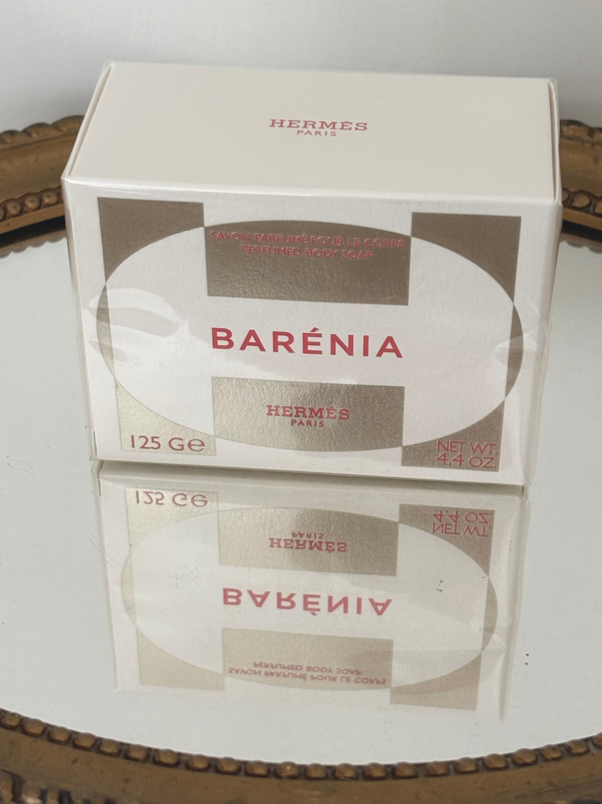 Een luxe geparfumeerde bodyzeep Barénia van Hermès Paris. Een verfijnde geur en een elegant verzorgingsritueel, nieuw in originele doos. 125 gram.