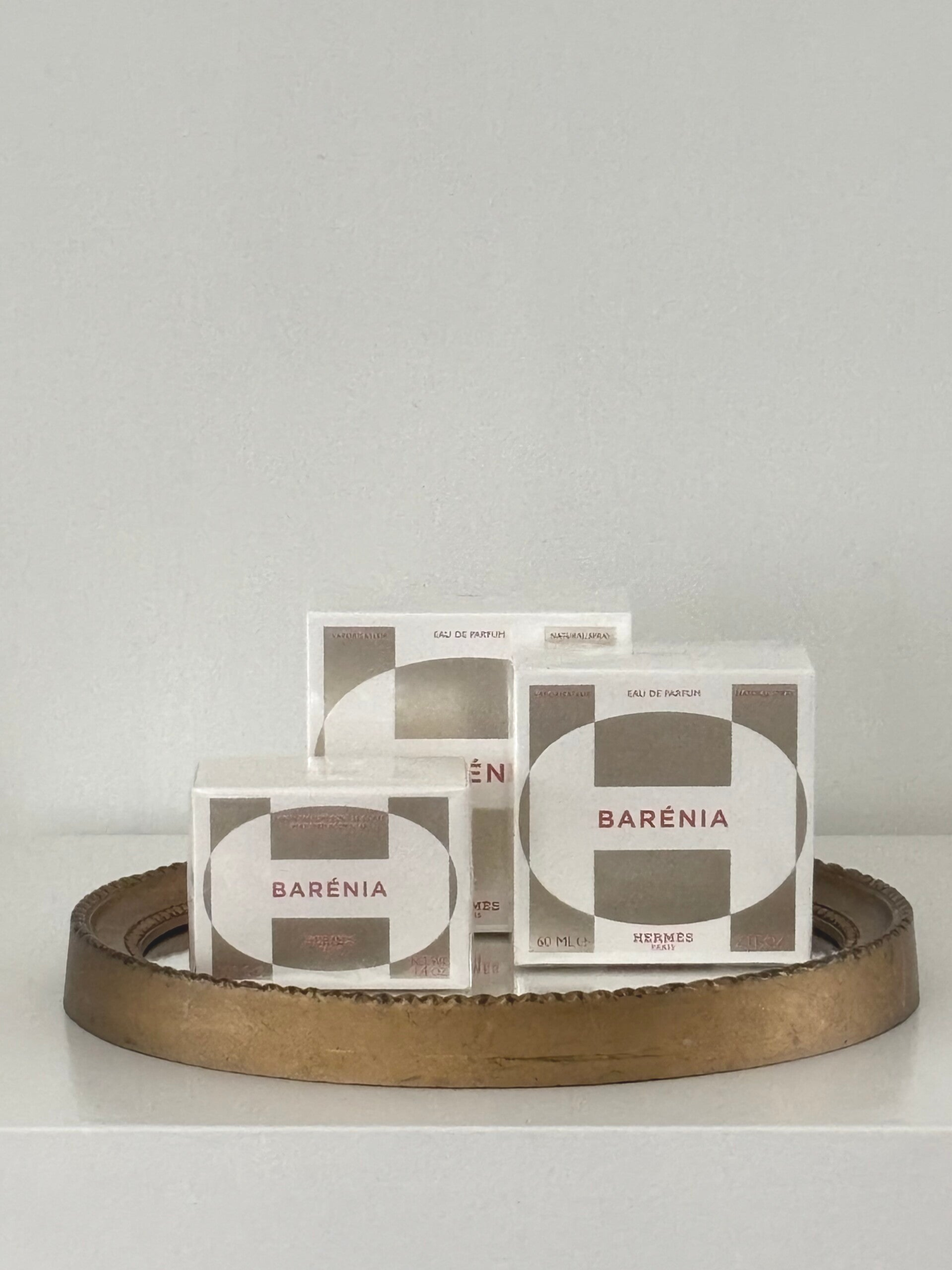 An elegant Barénia eau de parfum by Hermès Paris. A refined, timeless fragrance that exudes luxury and character, new in its original box. 60 ml.