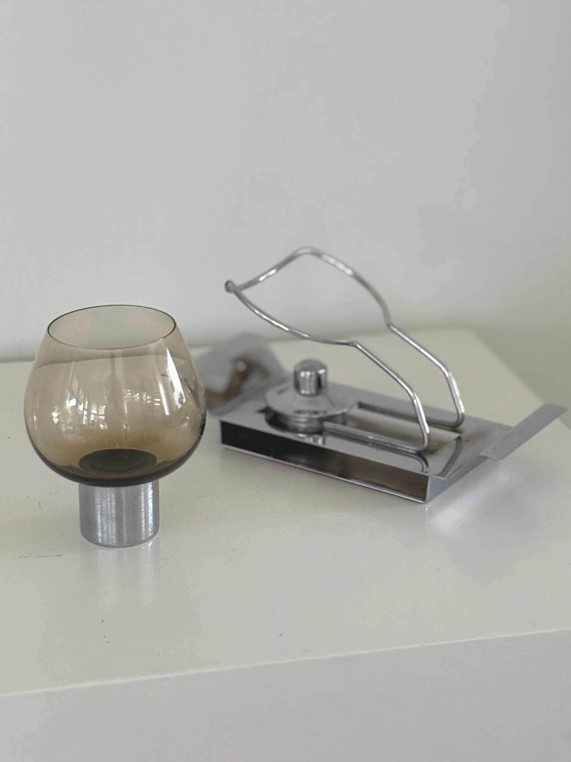 Stylish design cognac warmer with a timeless look. Once a wick is added, it allows the cognac glass to be gently warmed. A distinctive and decorative piece for bar or interior.