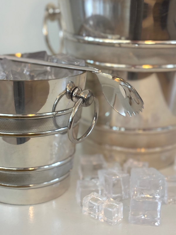 Verzilverde Champagnekoeler, ijsemmer & ijslepel - Silver-plated Champagne cooler, matching ice bucket & spoon
