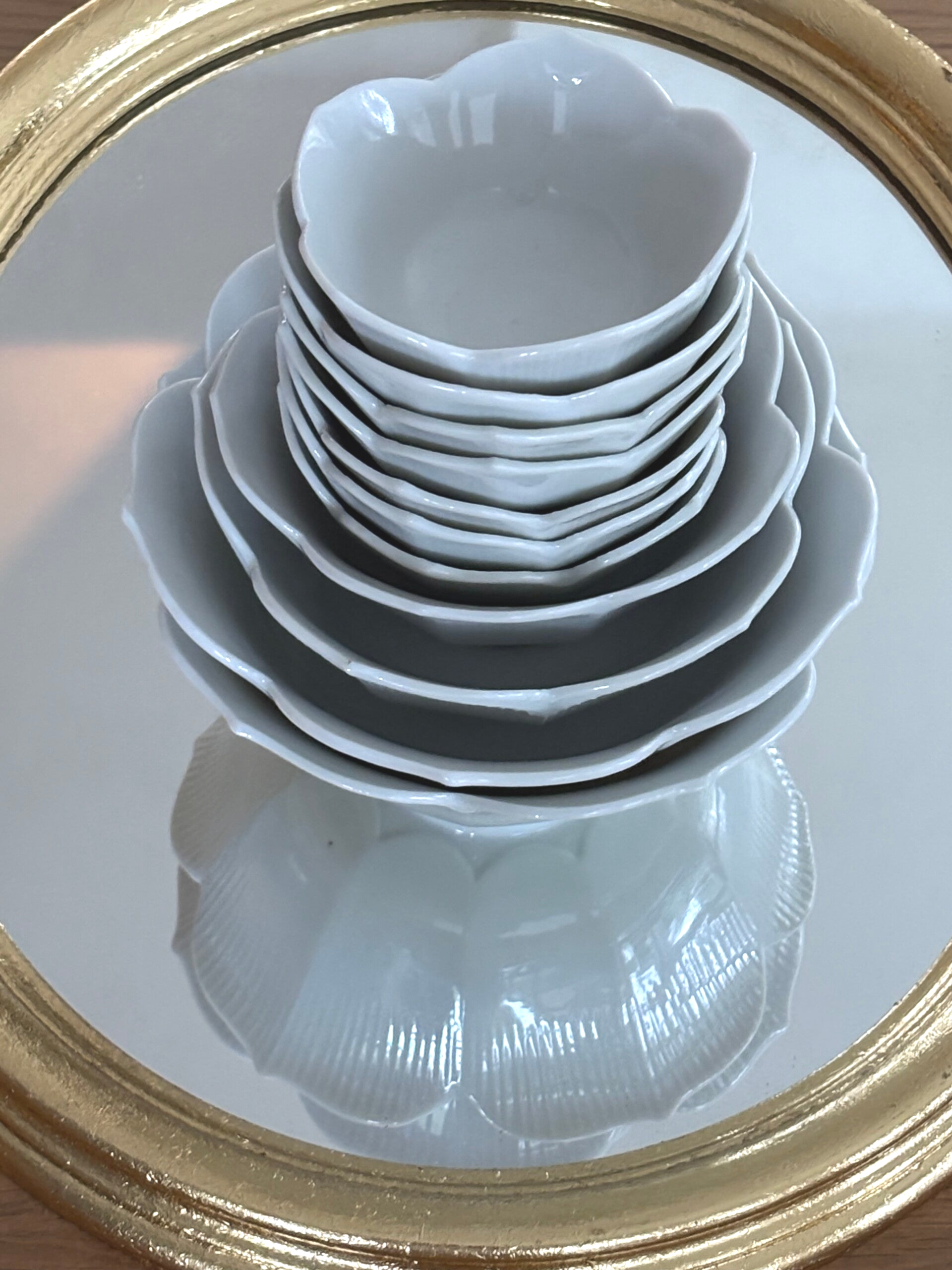 Set of 11 lotus bowls. Ideal for desserts, snacks, or decorative use.