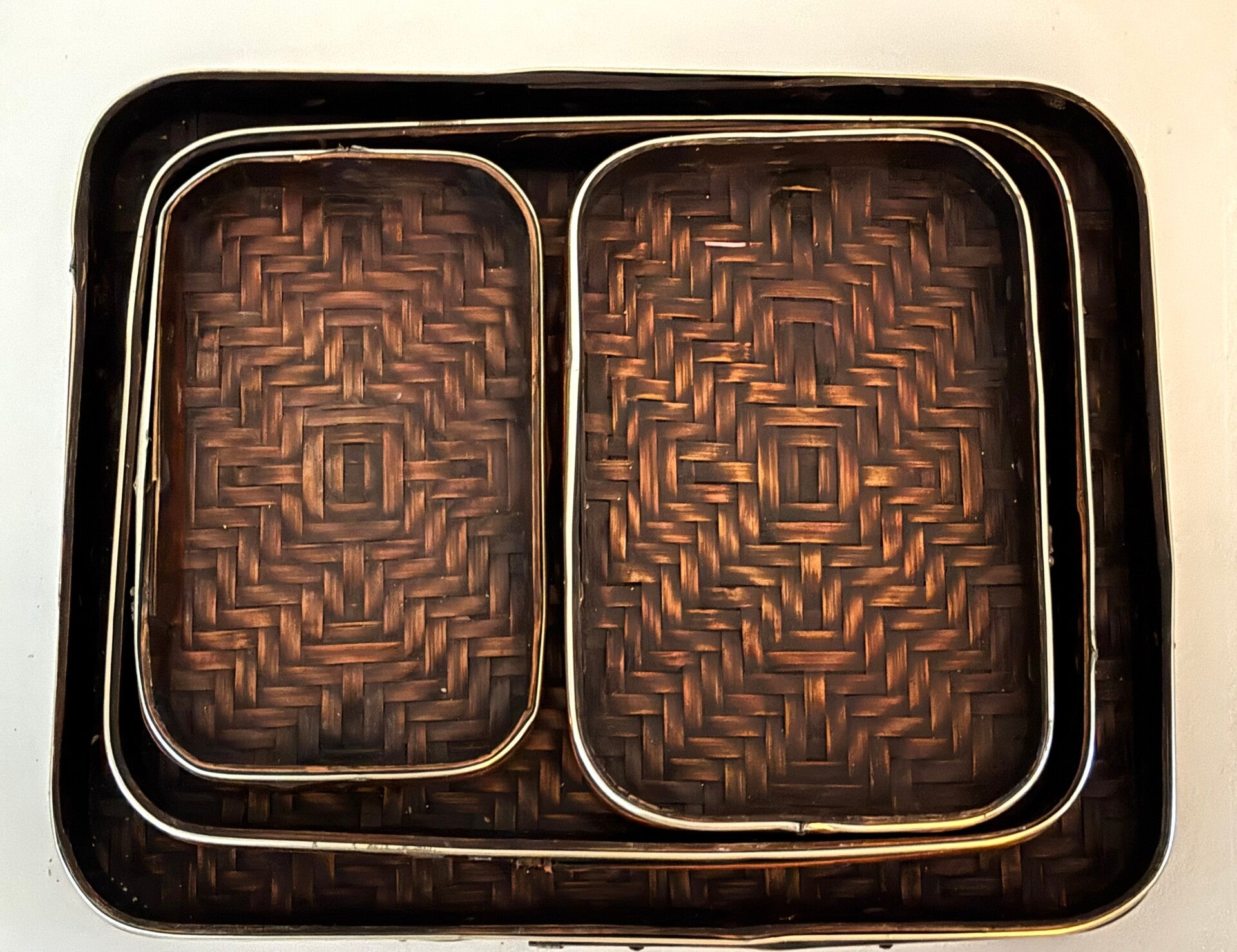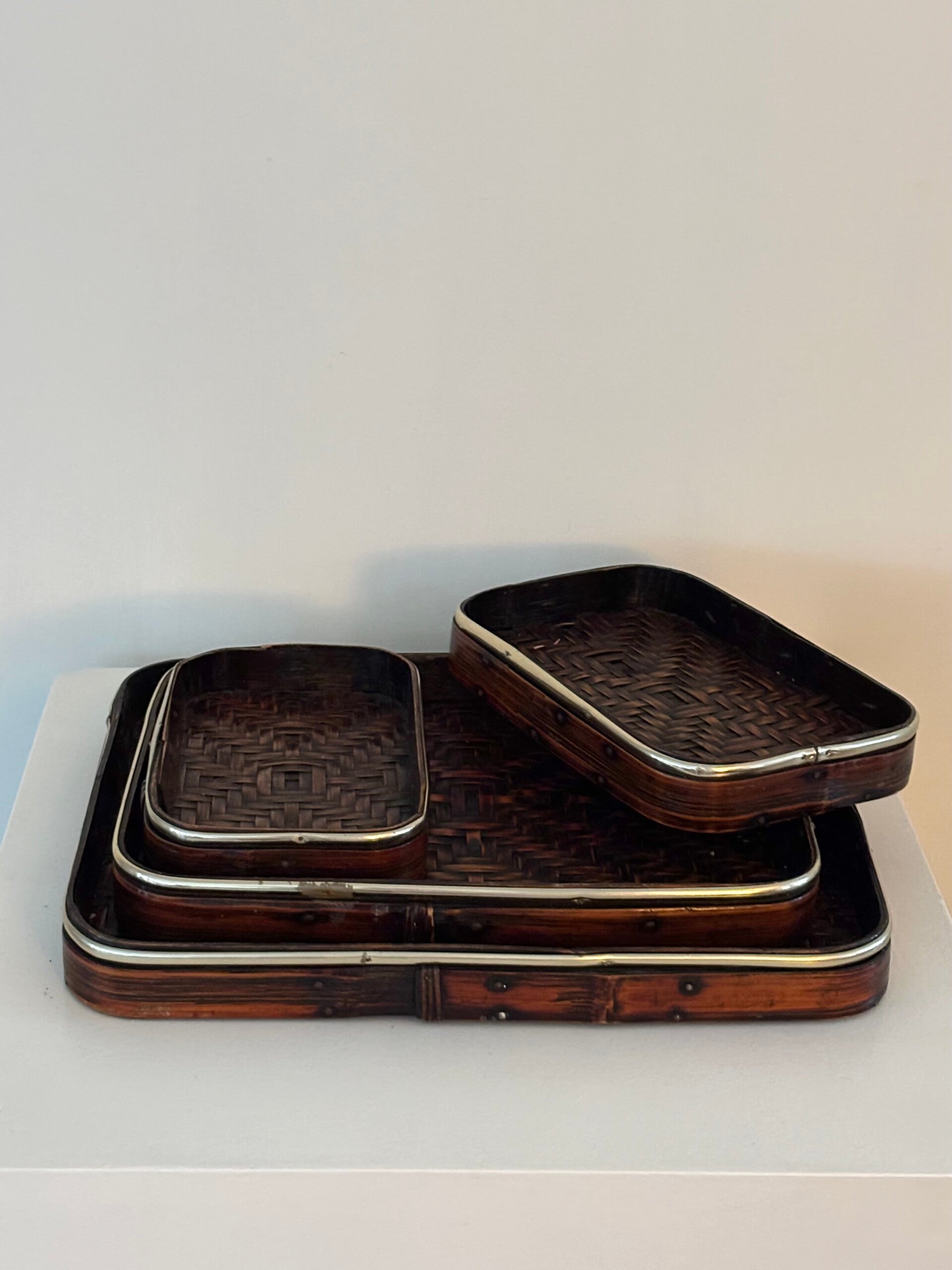A stylish set of 4 lacquered Japanese serving trays. Elegant and decorative, perfect for an aperitif or sharing moment. Largest size: 32.5 x 26 cm.