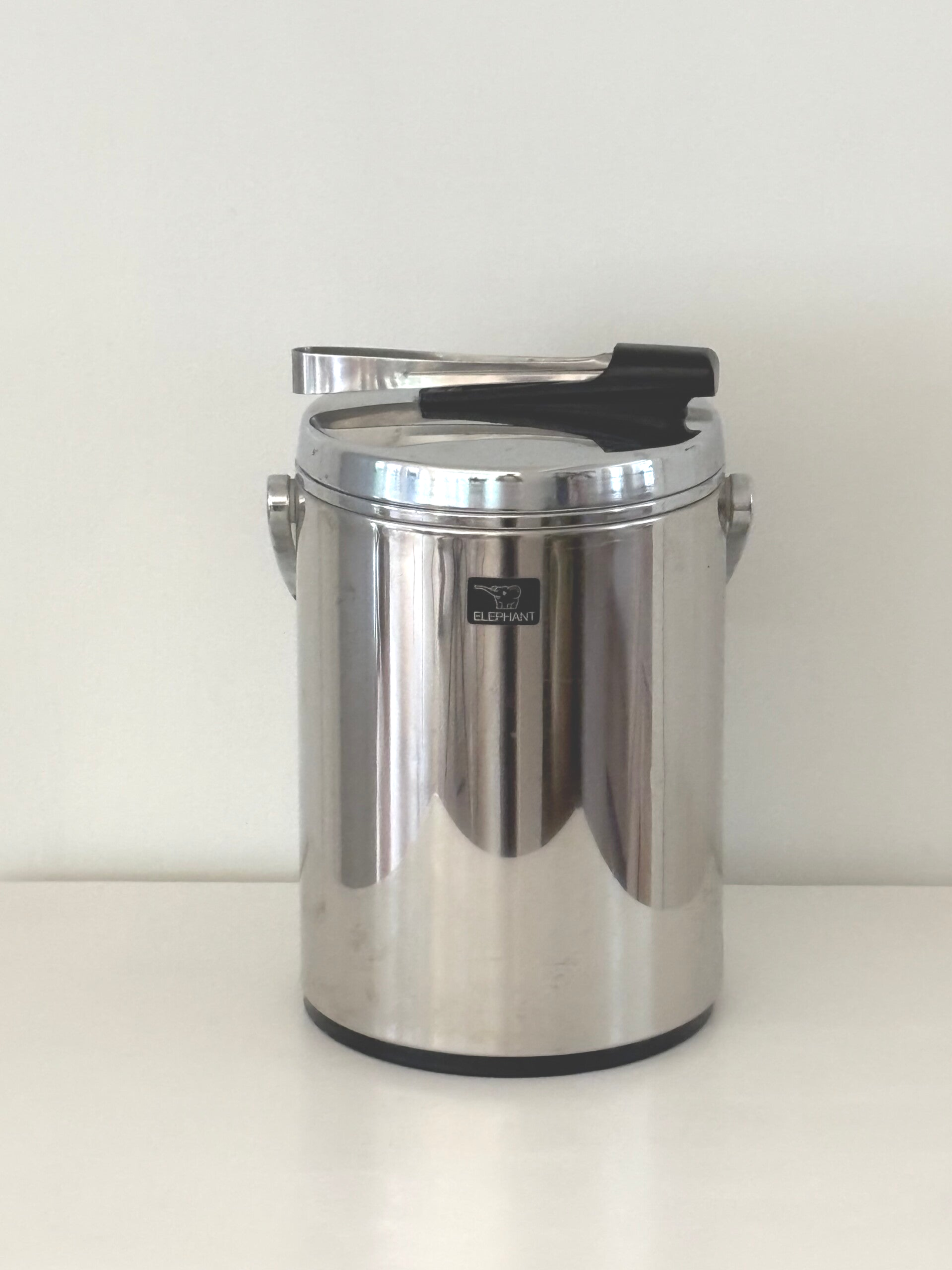Stylish ice bucket with matching ice tongs by Elephant. Timeless and practical, an elegant addition to bar or table. Dimensions: 21 x 13.5 cm.