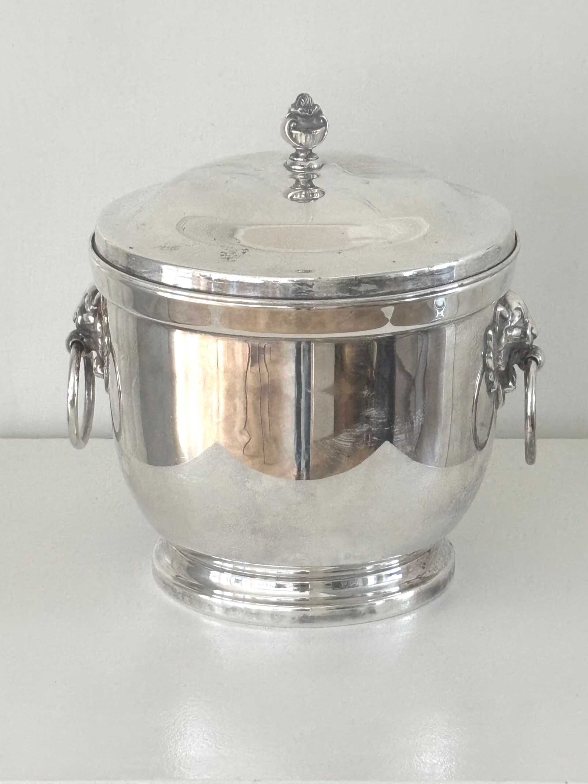 Elegante ijsemmer met mooie verfijnde details, vervaardigd door E.P.C. Bristol Silver Co. Een stijlvol en decoratief object voor tafel of bar. Afmetingen: 21 x 22 cm.