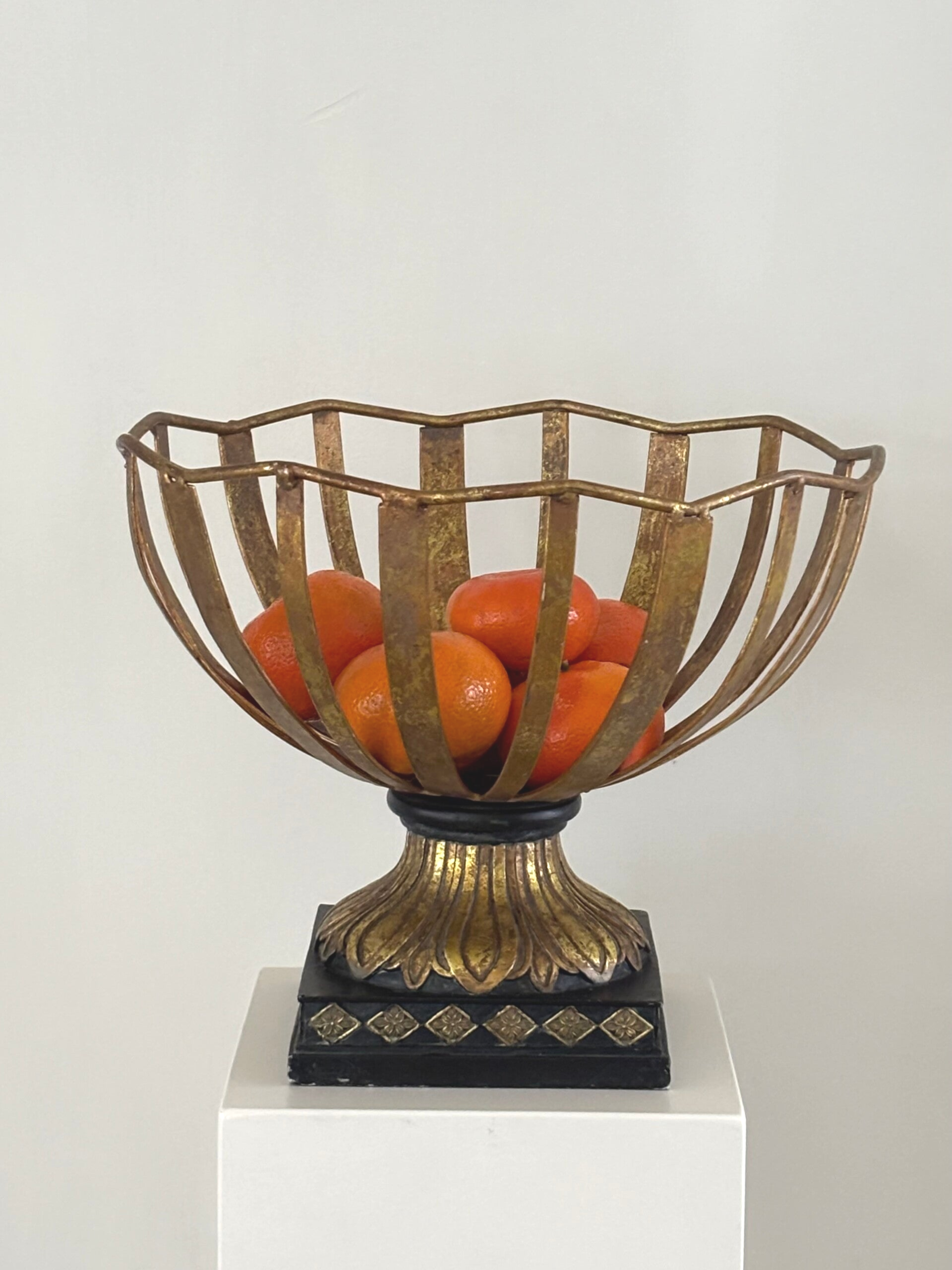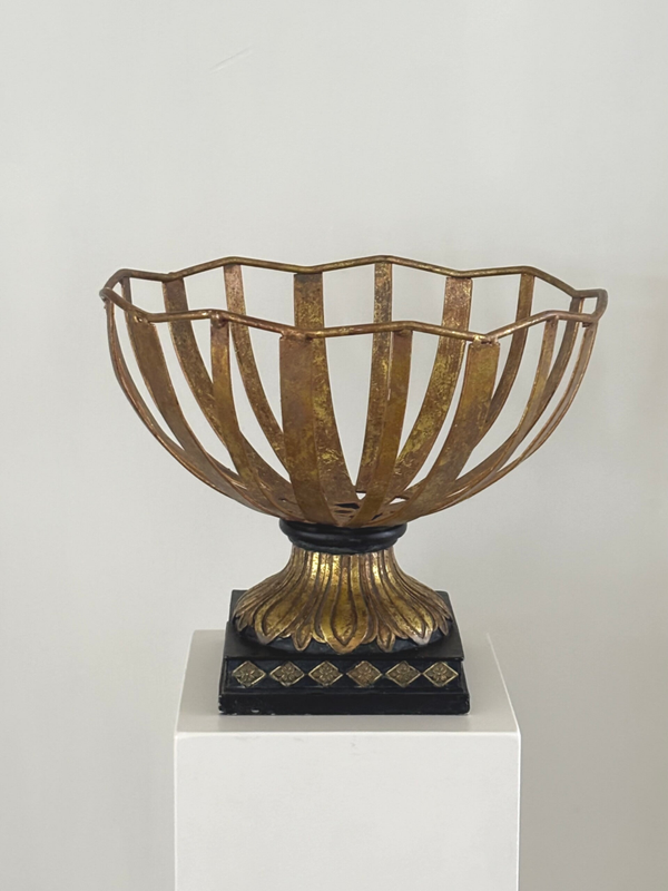 Large empire style pedestal bowl featuring an elegant openwork design. A refined decorative piece that also serves beautifully as a fruit bowl. Dimensions: 24 x 30 cm.