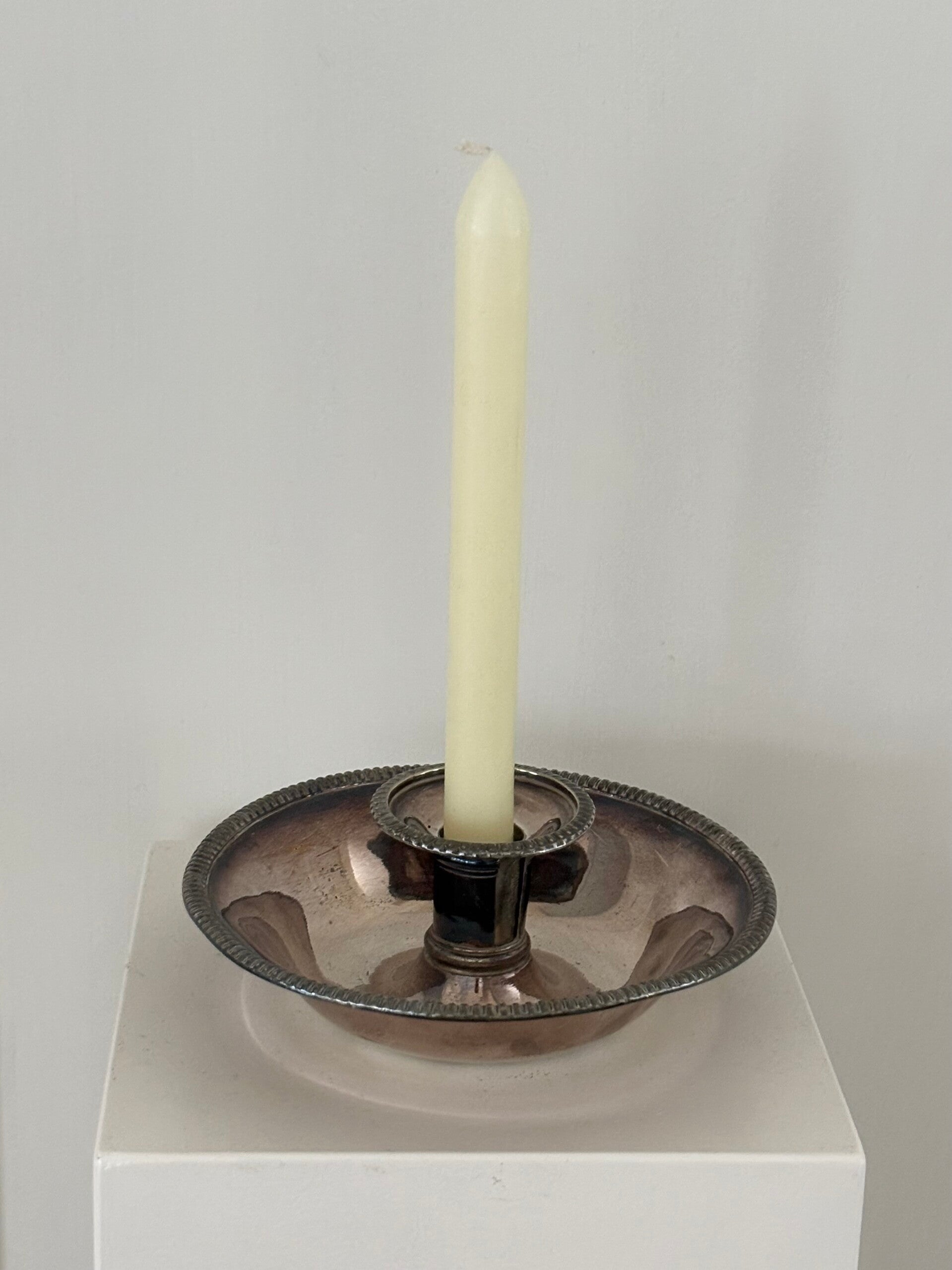 Silver-plated candlestick crafted by James Dixon & Sons of Sheffield. Marked on the underside ‘EPBM’, ‘B’ and ‘389 G’. An elegant and timeless design with refined character. Dimensions: 17 x 6 cm.