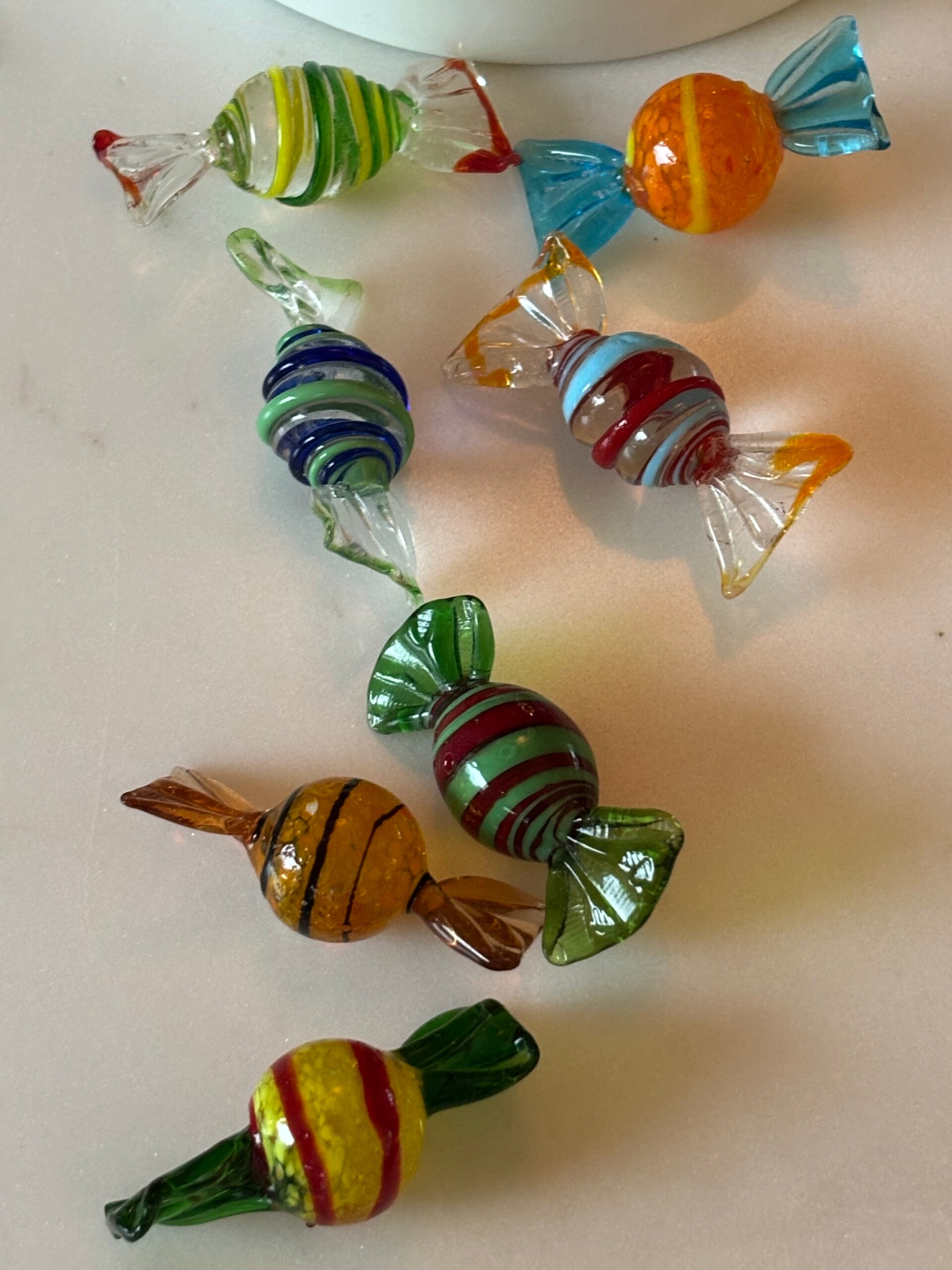 7 Handgemaakte glazen snoepjes - 7 Handmade glass candies