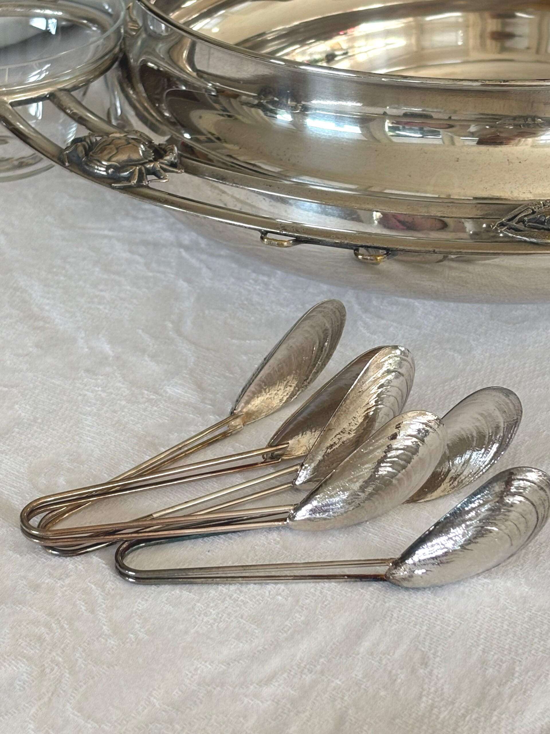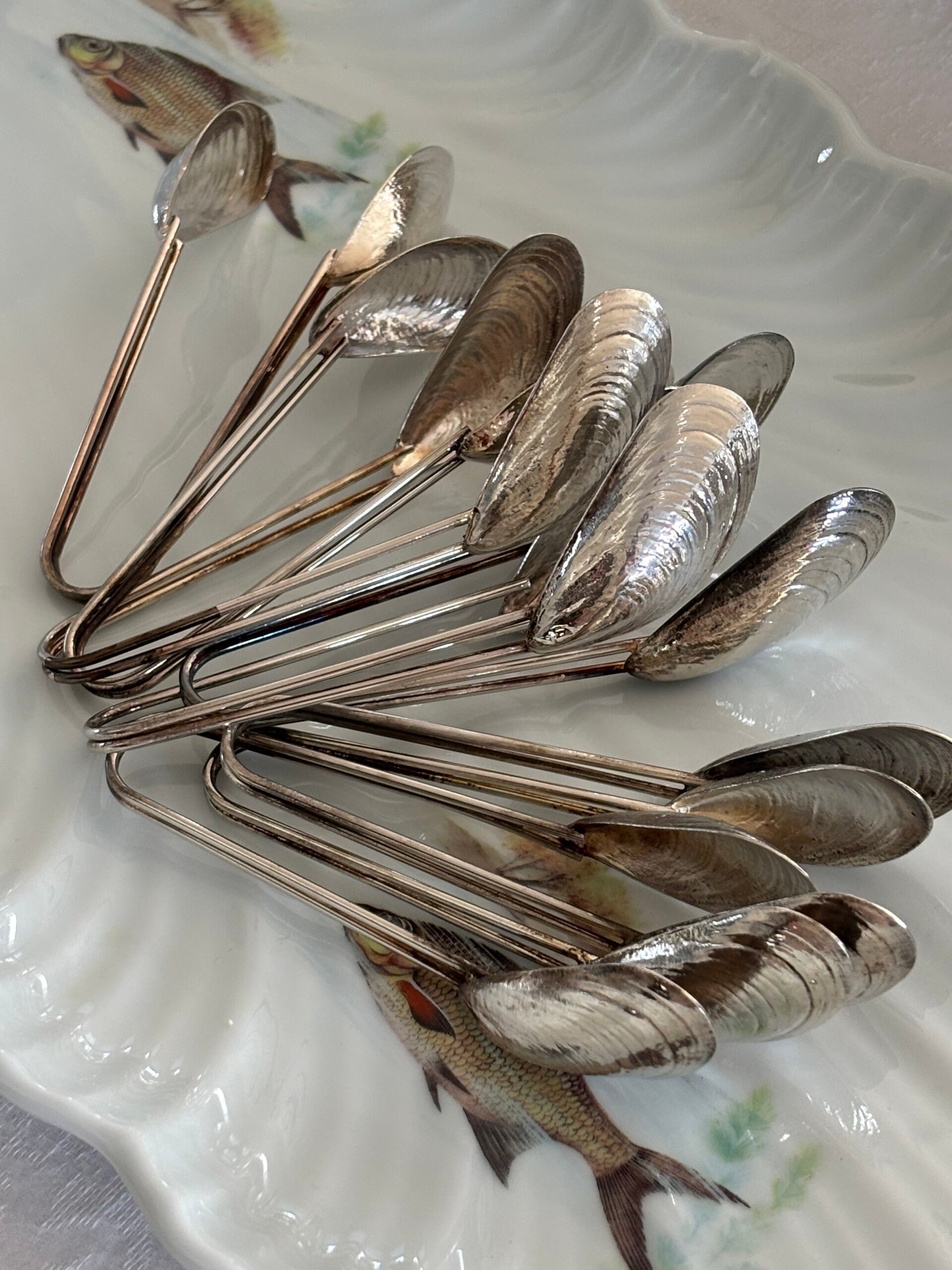 Verzilverde mosseltang, een verfijnd detail tijdens een sfeervol seafood diner. Elegant en praktisch in gebruik. Afmetingen: 11,5 x 3,5 cm. Meerdere exemplaren op voorraad.