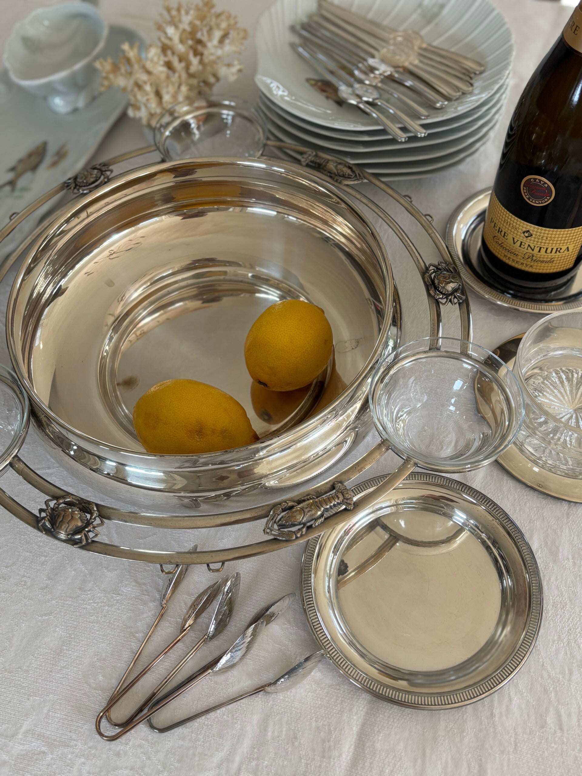 Silver-plated mussel tongs, a refined detail for an elegant seafood dinner. Both practical and stylish. Dimensions: 11.5 x 3.5 cm. Several available.