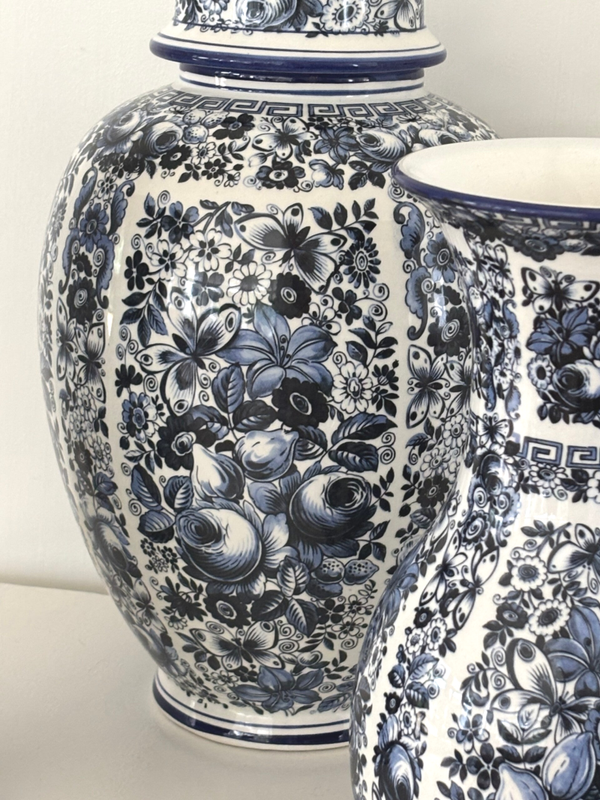 Kaststel Delfia van keramiek, bestaande uit een dekselpot en een vaas. Prachtig als set te plaatsen of afzonderlijk te gebruiken als decoratieve vazen. Een stijlvol duo met tijdloze uitstraling. Afmetingen vaas: 26 x 14 cm. Afmetingen dekselpot: 36 x 20 cm.