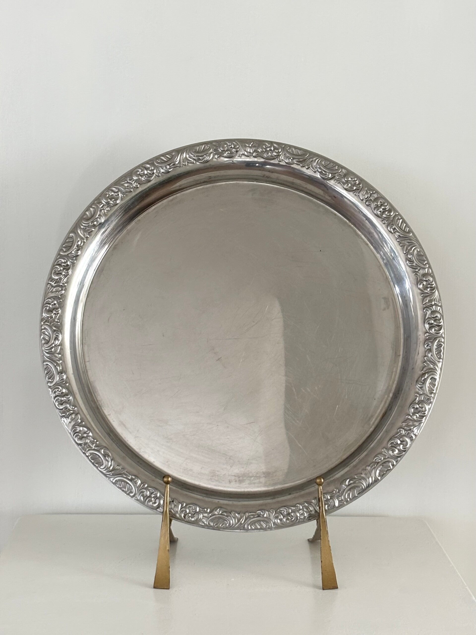 Round tray with a decorated raised rim. A classic and elegant design, perfect for both festive occasions and everyday use. Diameter: 36 cm.