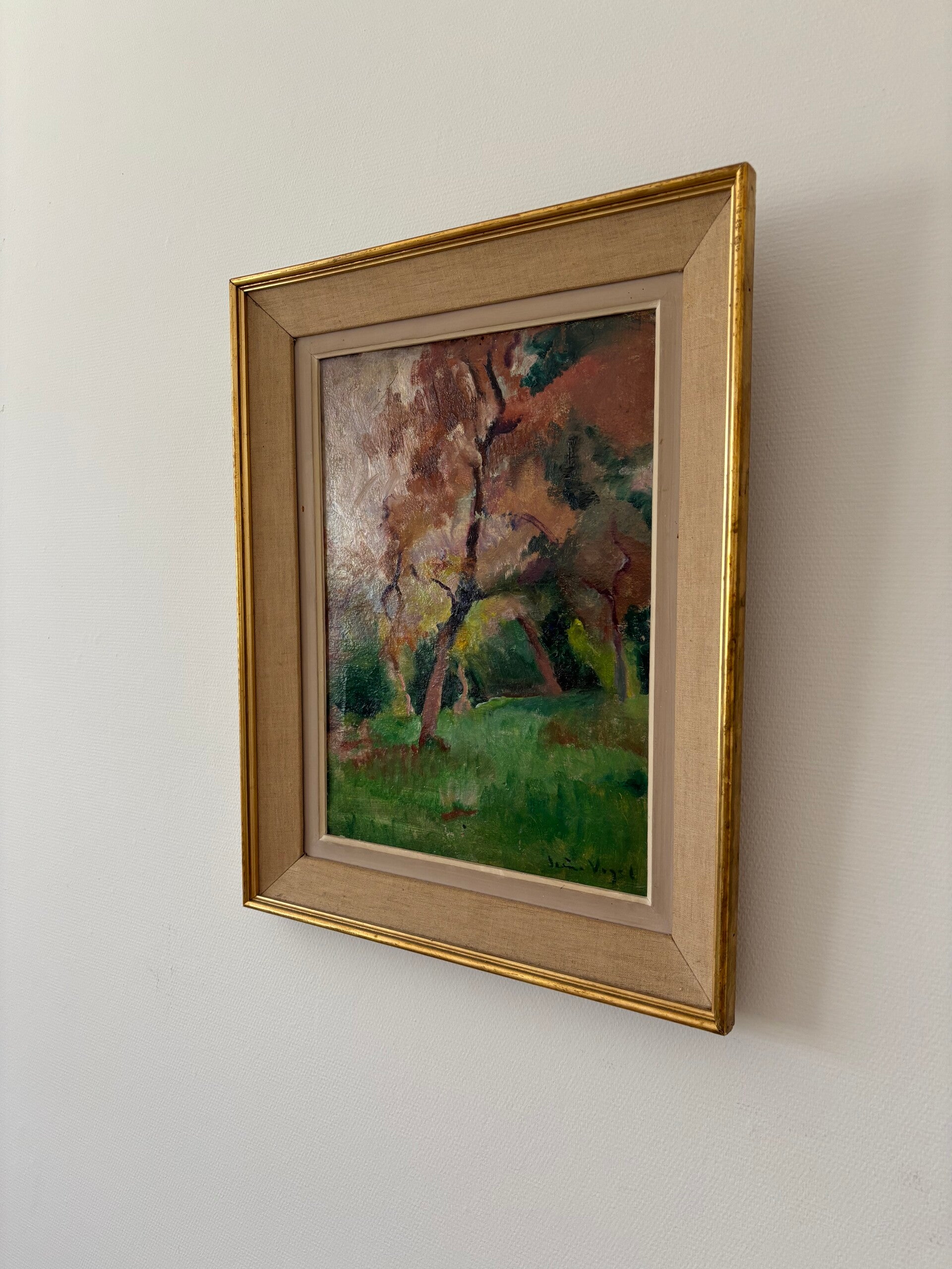 Antique still life painting in oil on canvas. Signed “Vogel” in the lower right and reframed in the 1960s. A characterful and decorative artwork with a classic appearance. Dimensions including frame: 42 x 52 cm.