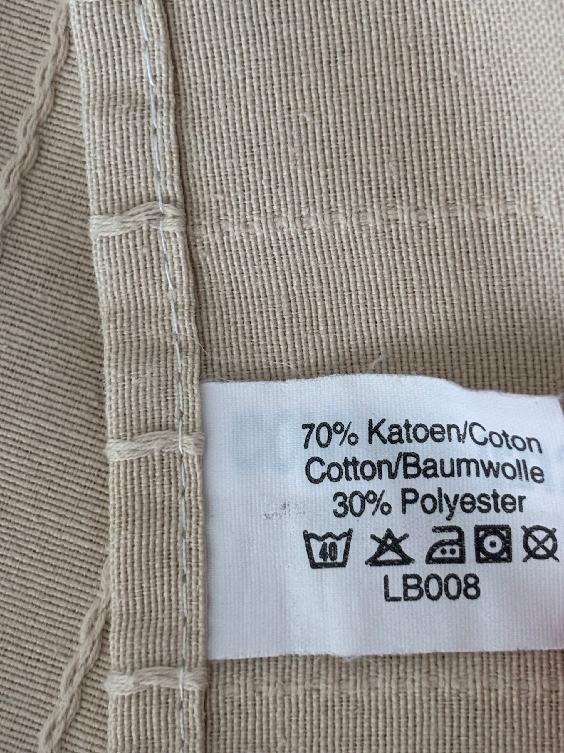 Tafelkleed met een mooi gestreept patroon in een warme beige tint. Een tijdloos en stijlvol textielstuk dat rust en elegantie brengt aan de tafel. Afmeting: 150 x 255 cm.