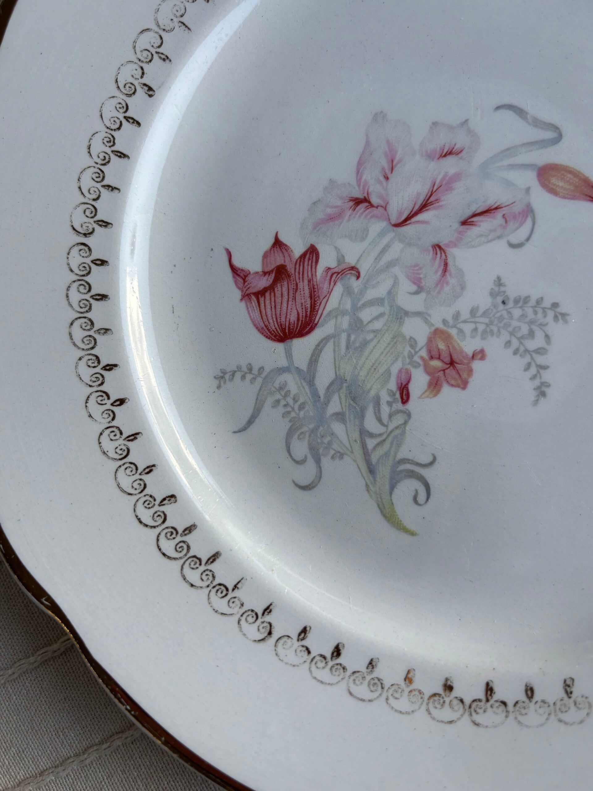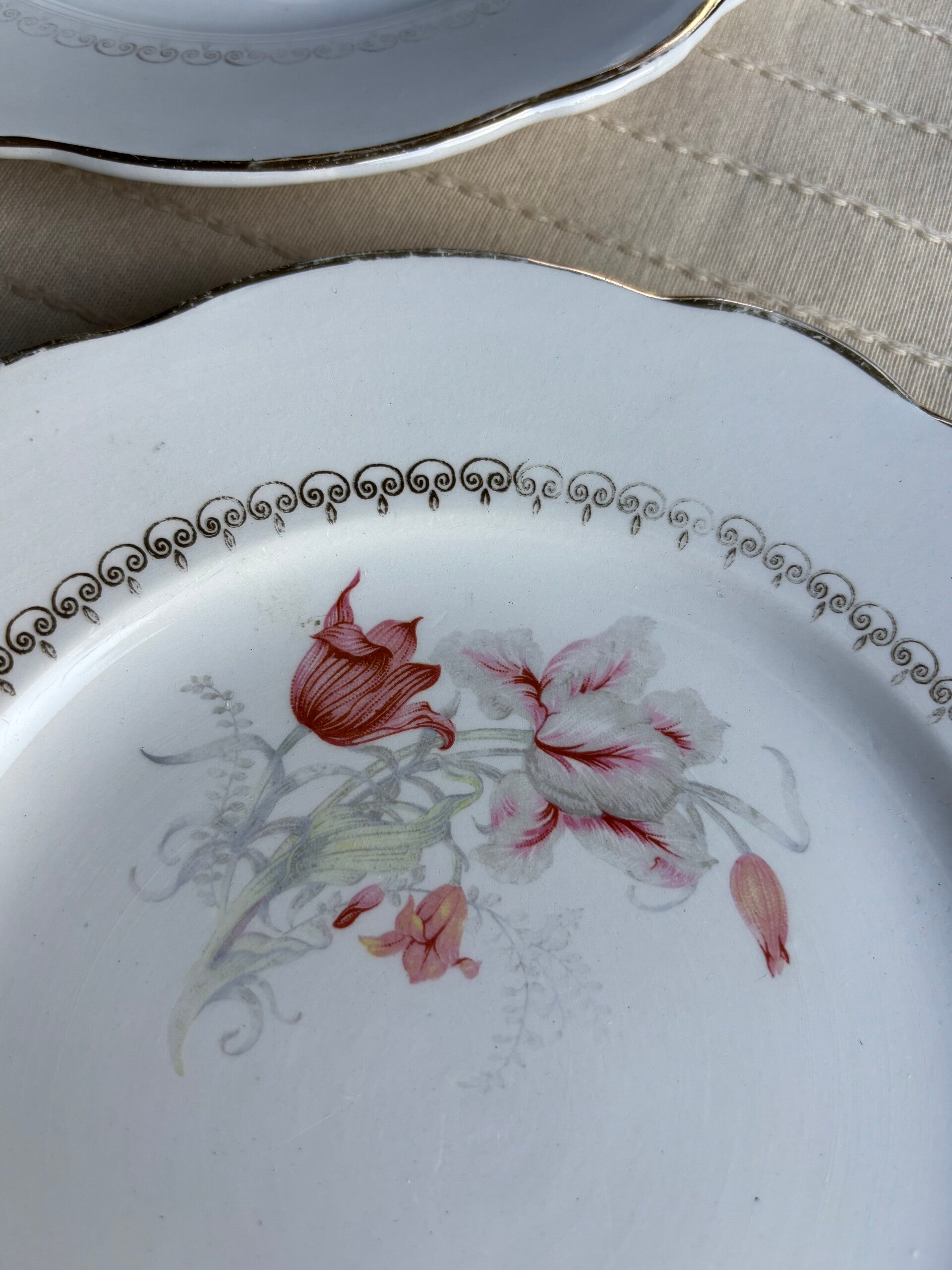 Set van 10 gebaks-/ontbijtbordjes uit de serie ‘Harlem’ van Luneville France. Elegante borden met een tijdloze uitstraling, perfect voor ontbijt of gebak. In mooie gebruikte vintage staat.