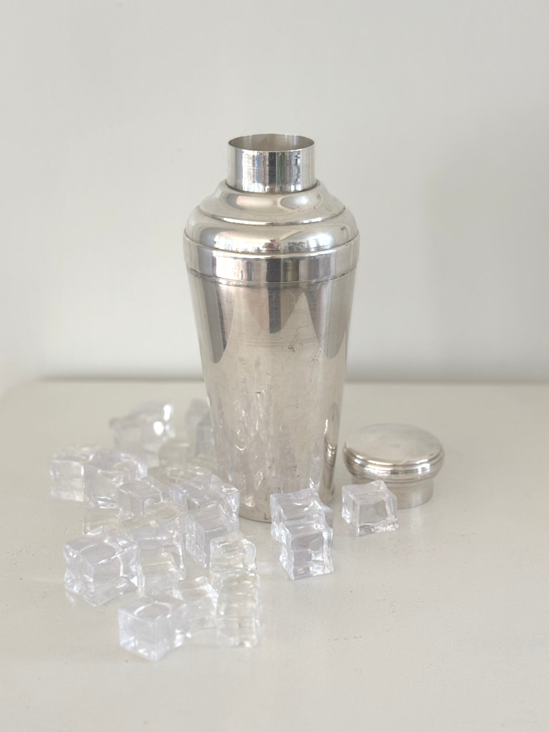 Antieke verzilverde cocktailshaker van ‘Le Chardon’ France. Een charmant en stijlvol stuk in vintage conditie, zie foto's. Afmeting: 22 x 8,9 cm.