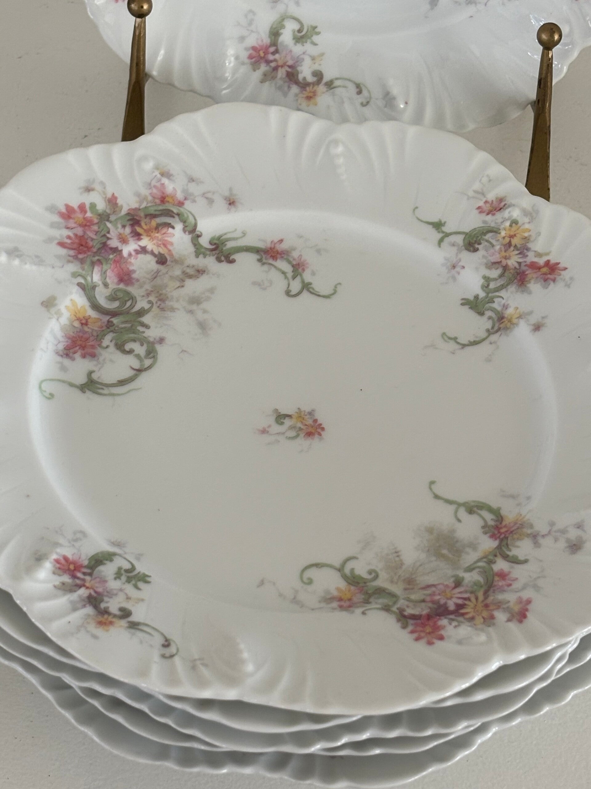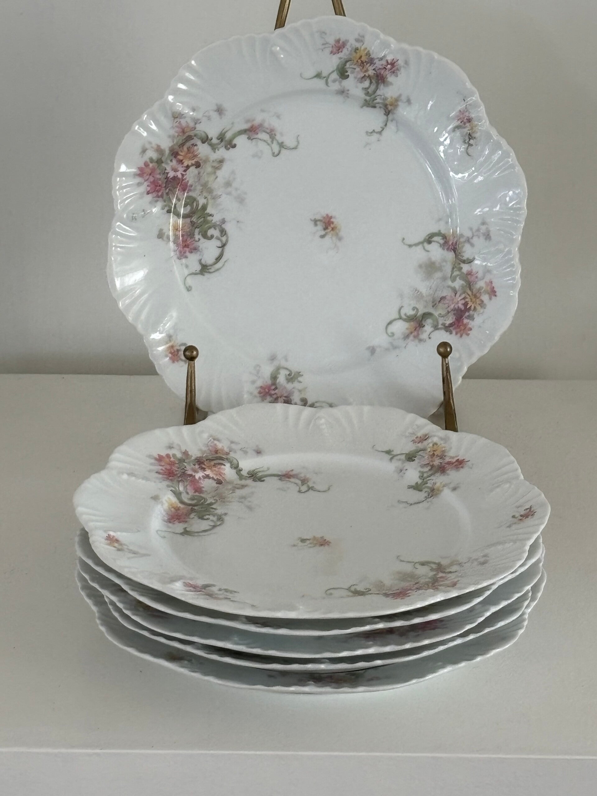 6 Limoges France porcelain plates with floral decor. Exquisite craftsmanship and timeless elegance.