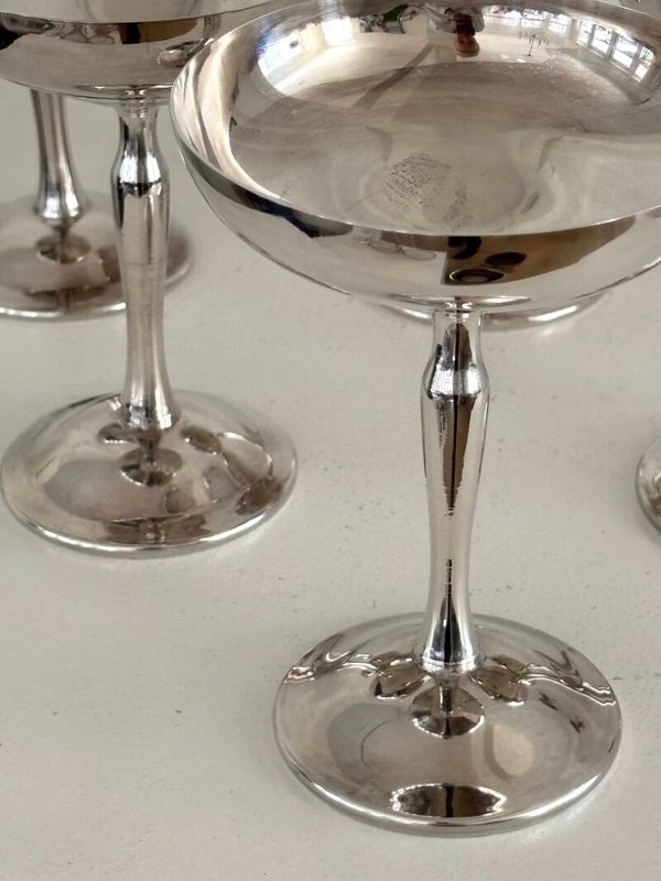 Set of 6 silver-plated high-stem coupes. Refined vintage charm, perfect for any occasion. Dimensions: 14,2 x 10,6 cm.
