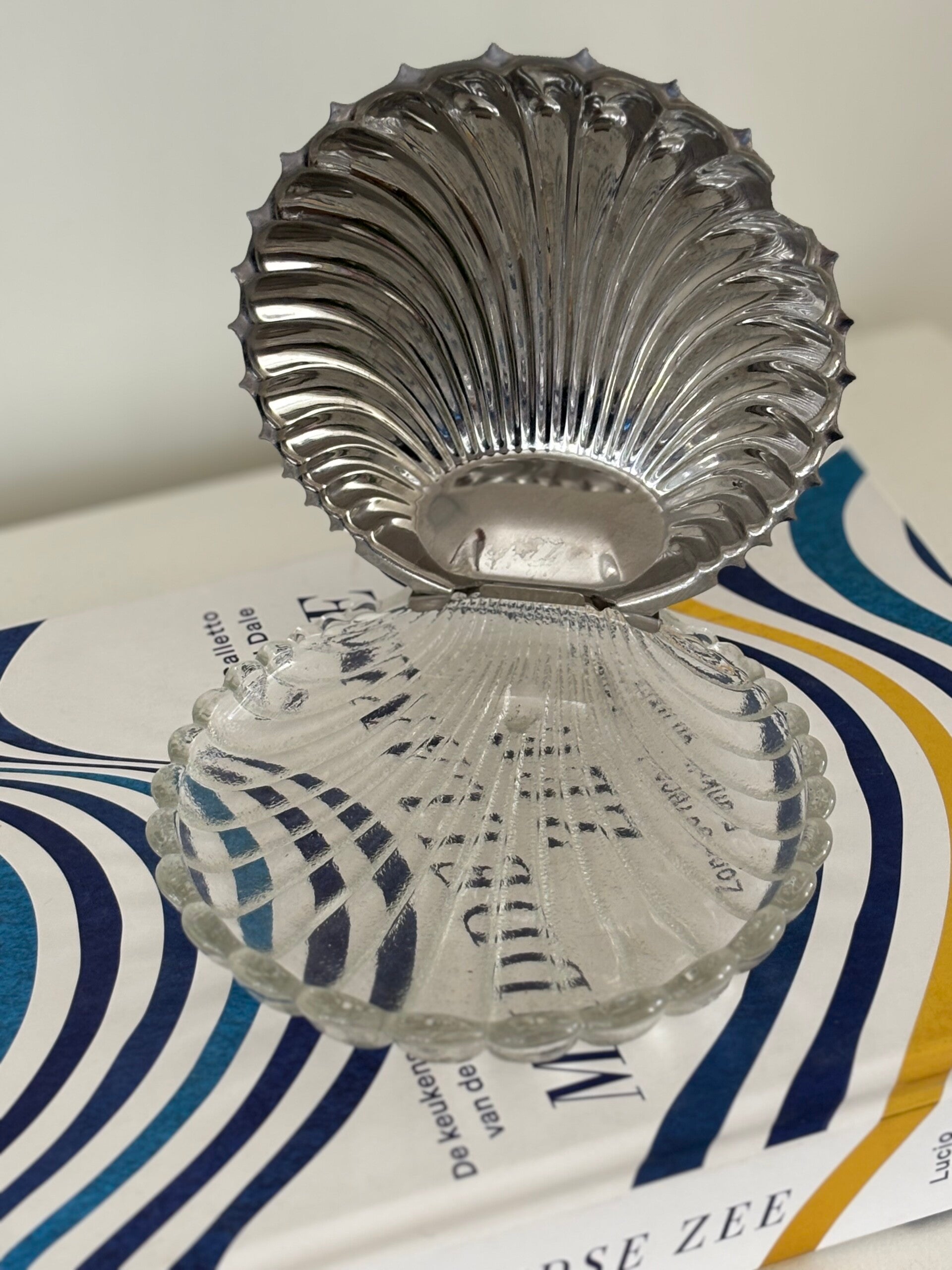 Elegante boter- of kaviaarschelp met glazen bodem - Elegant butter or caviar shell with glass base