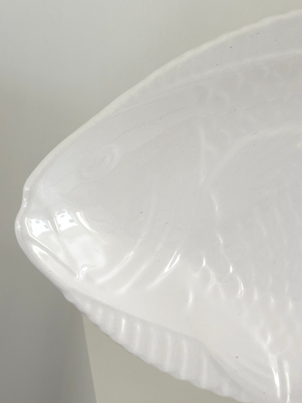 Grote keramische visschaal. Ideaal voor het serveren van vis of hapjes.bAfmeting: 54,5 x 25,5 cm. Decoratief en praktisch voor tafel of buffet.