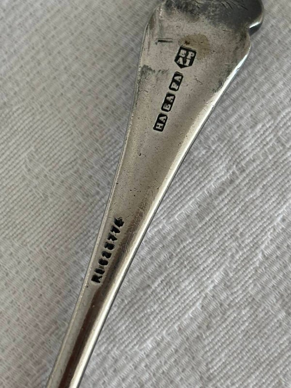 Verzilverde Engelse eierhouderset. Gemerkt aan de onderzijde en op de lepels. Met mooie patina, naar wens verder op te poetsen.