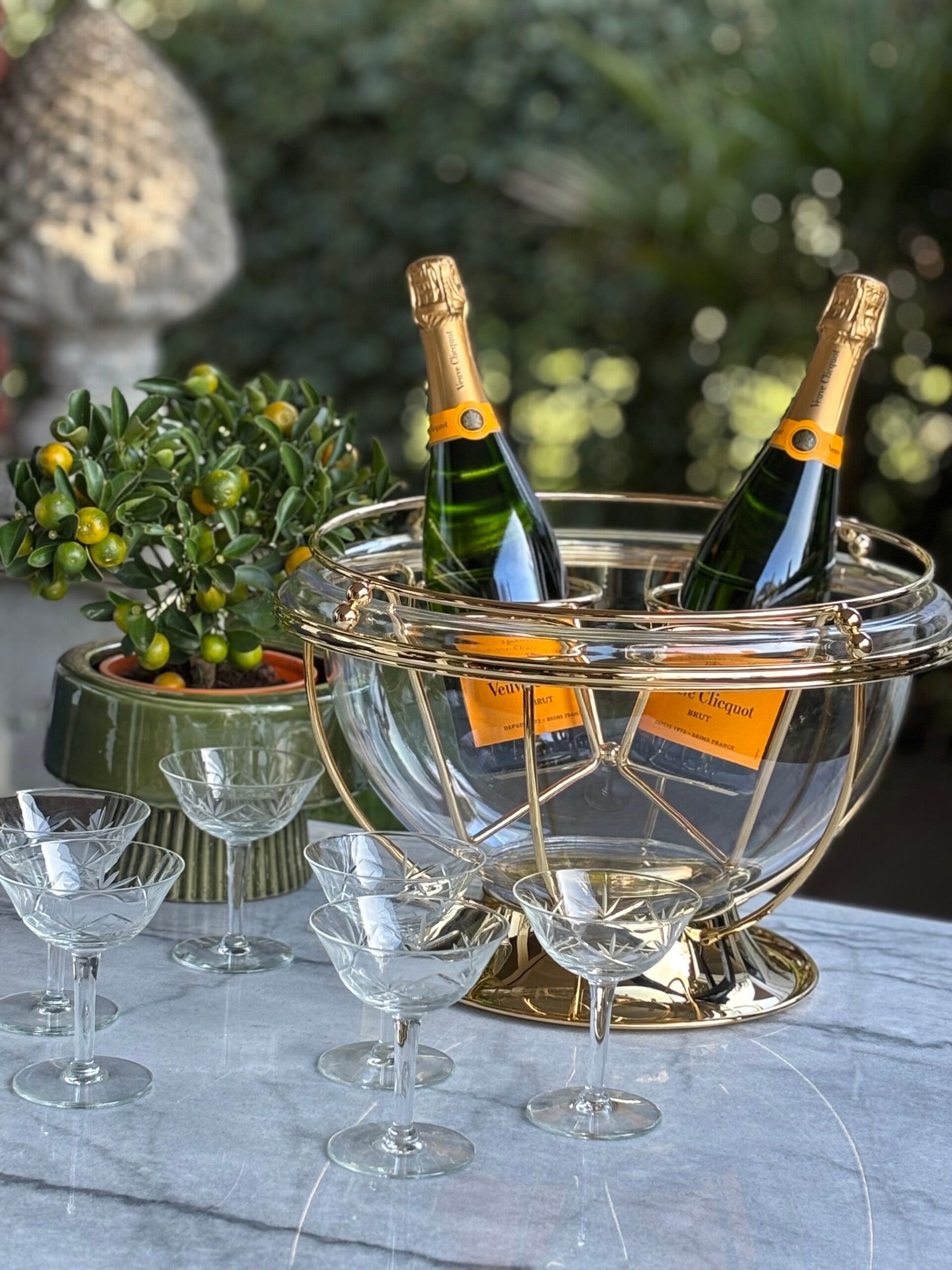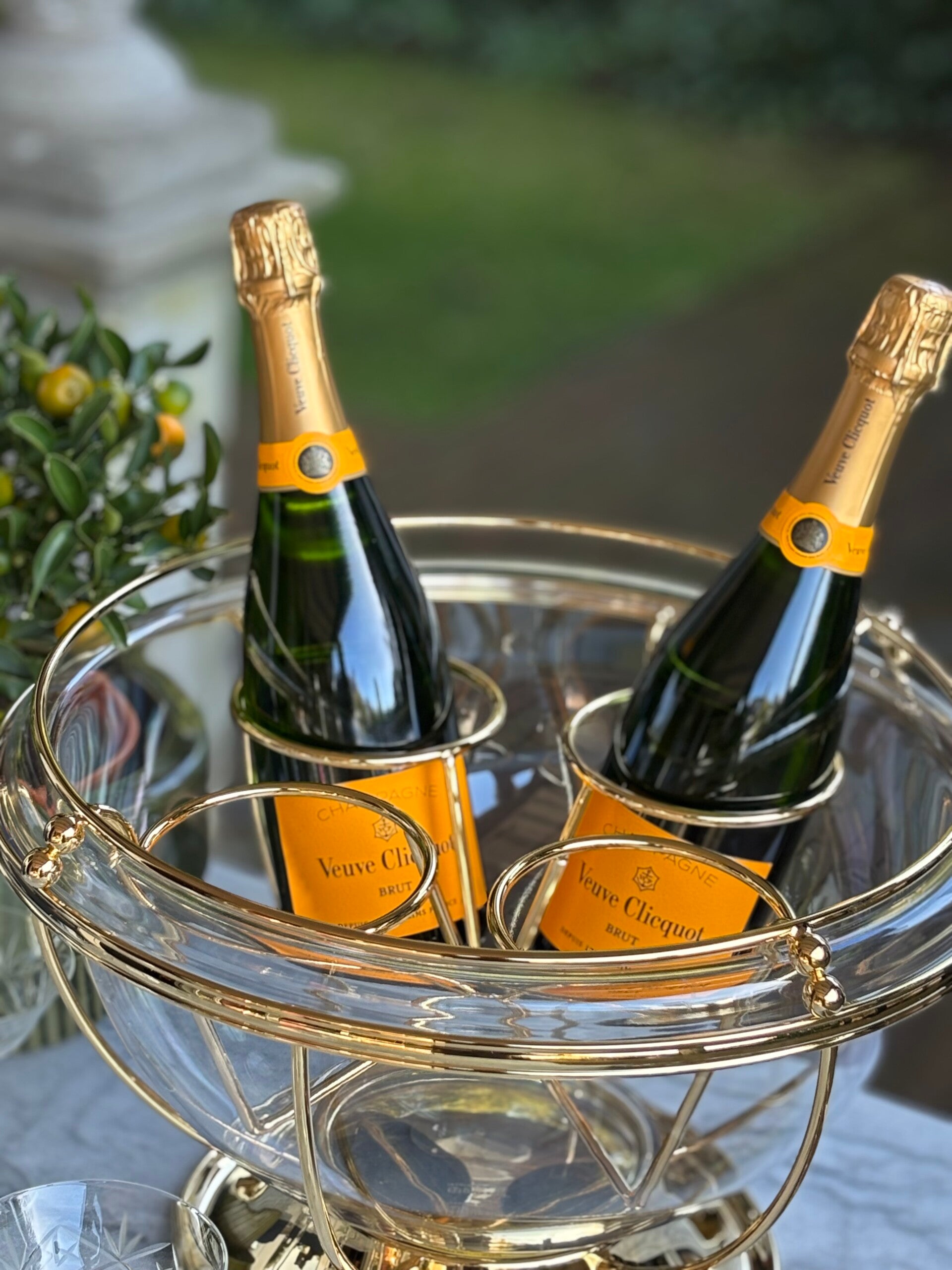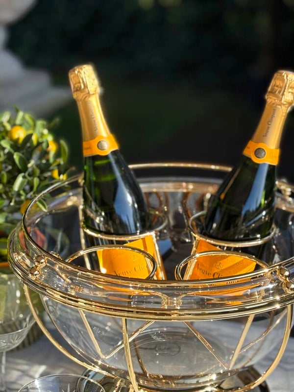 Champagnekoeler XL van het merk Guzzini Italy. De grote koeler heeft een uitneembare houder en plexiglazen inlay en is geschikt voor 4 champagneflessen. Een ware eyecatcher op bar of tafel!