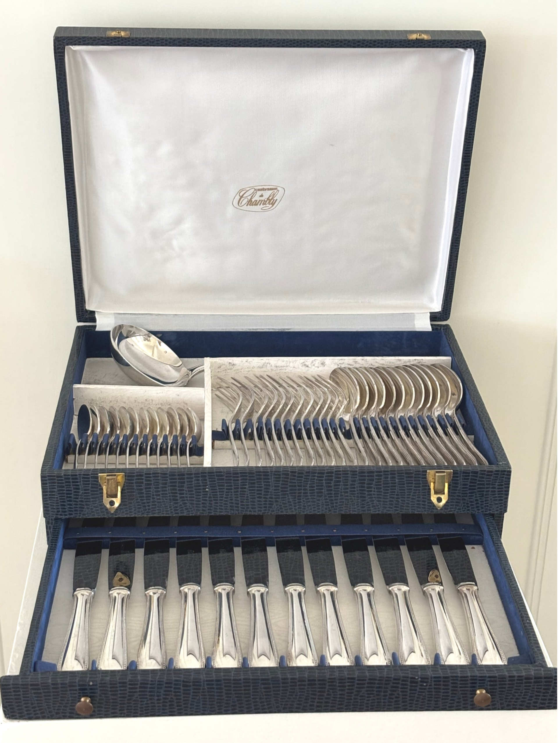 49-Delige verzilverde bestekcassette Orfèvrerie Chambly France - 49-Piece silver-plated cutlery set by Orfèvrerie Chambly France