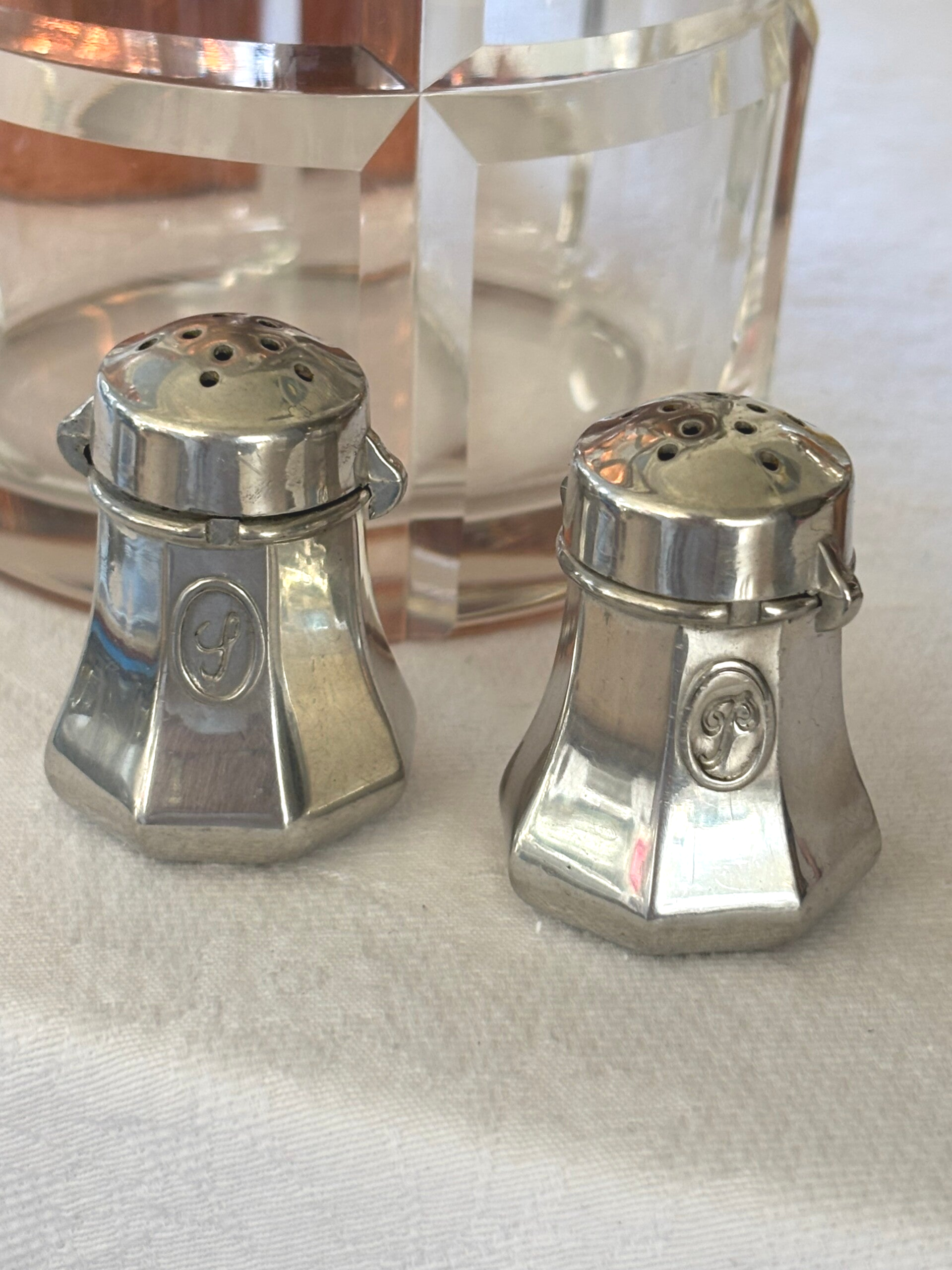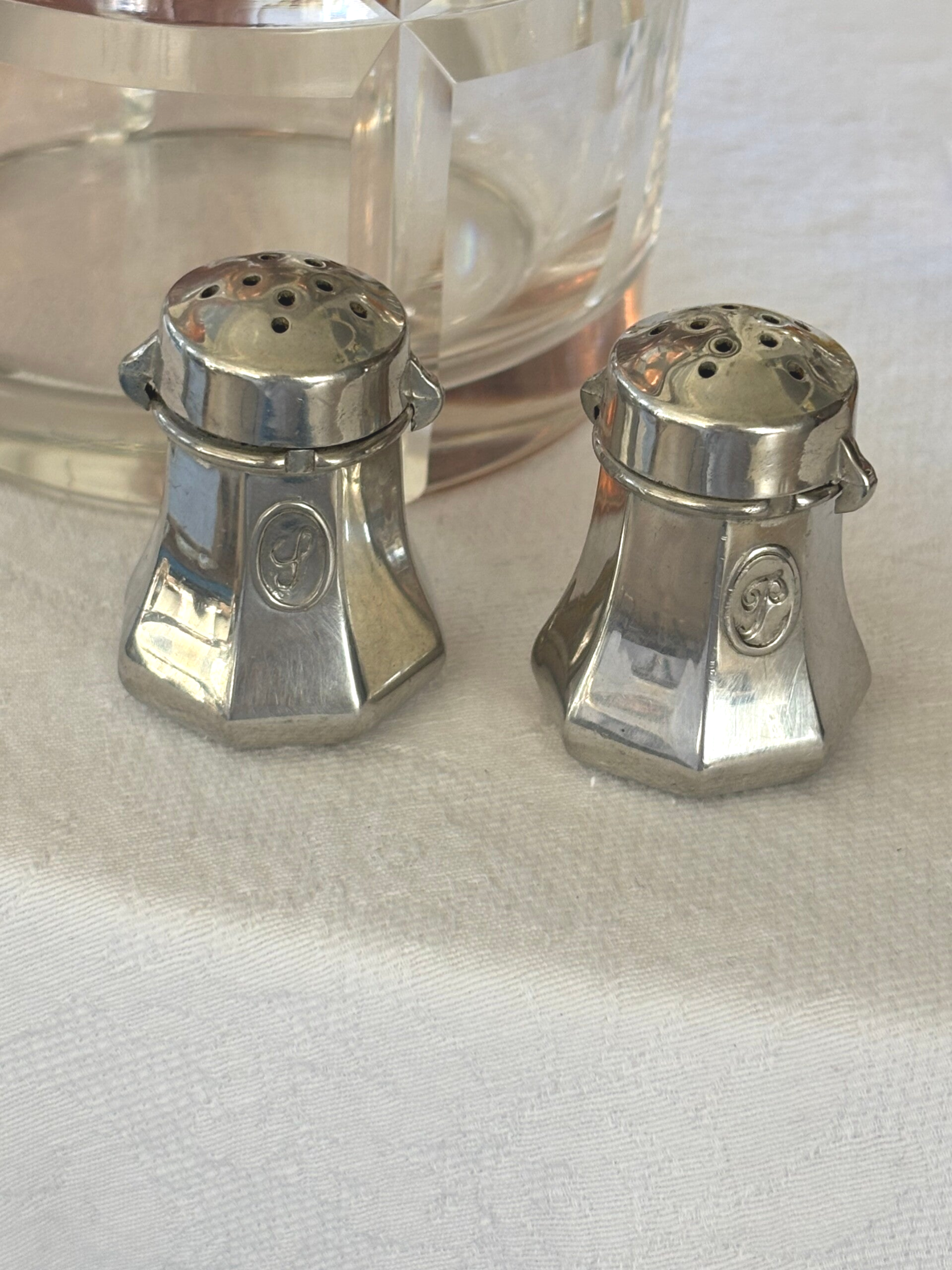 Verzilverd peper- en zoutstel Étains Du Manoir - Silver-plated salt and pepper set Étains Du Manoir