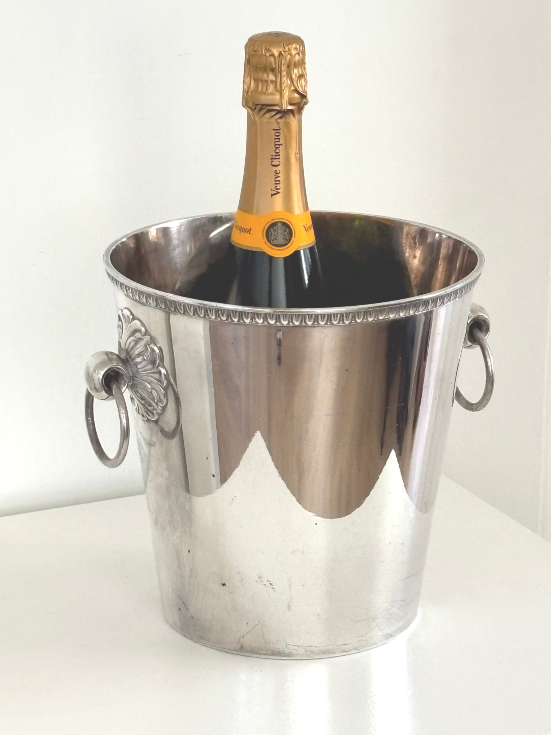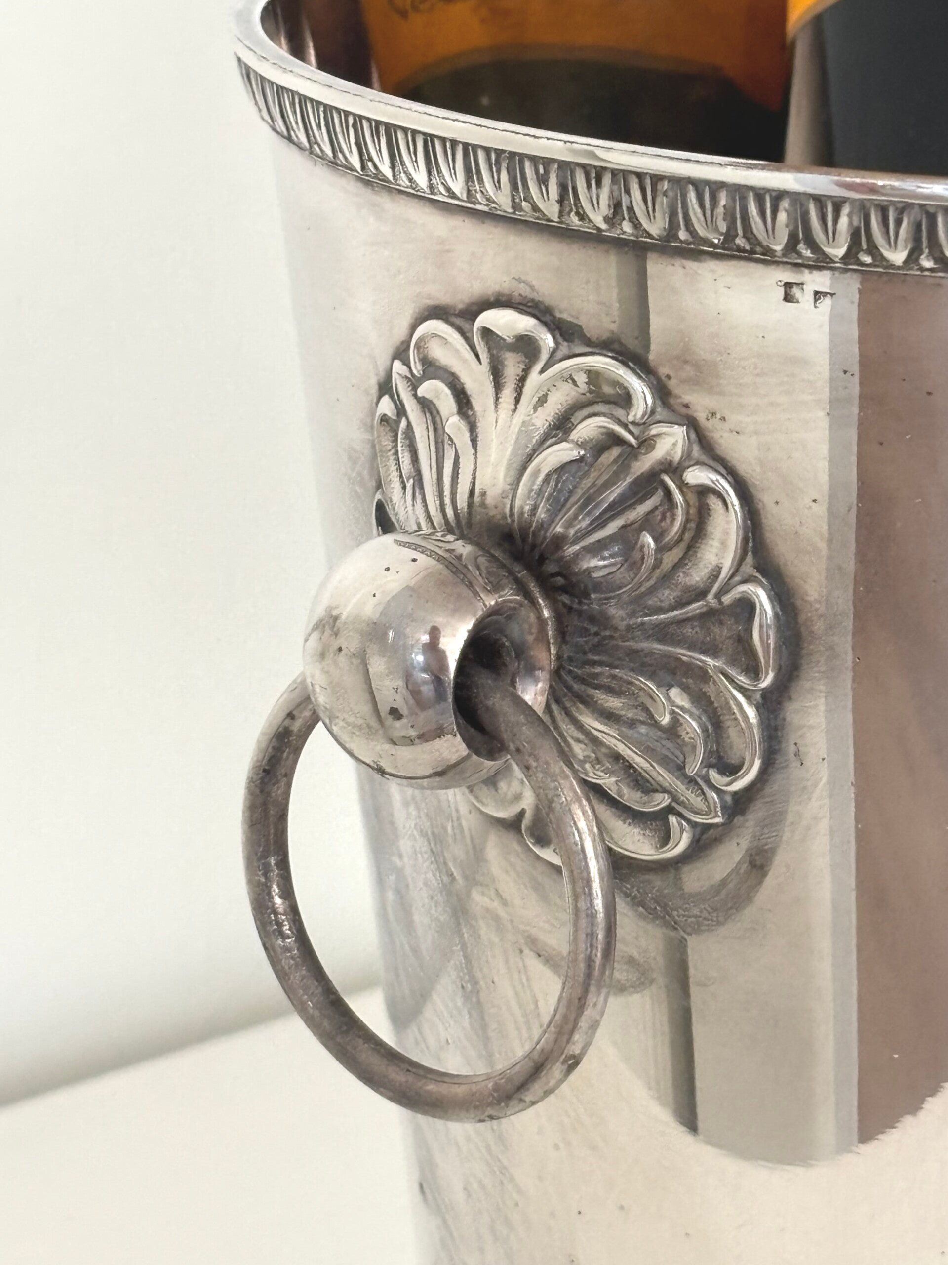 Verzilverde champagnekoeler met bloemdetail - Silver-plated champagne cooler with floral detail