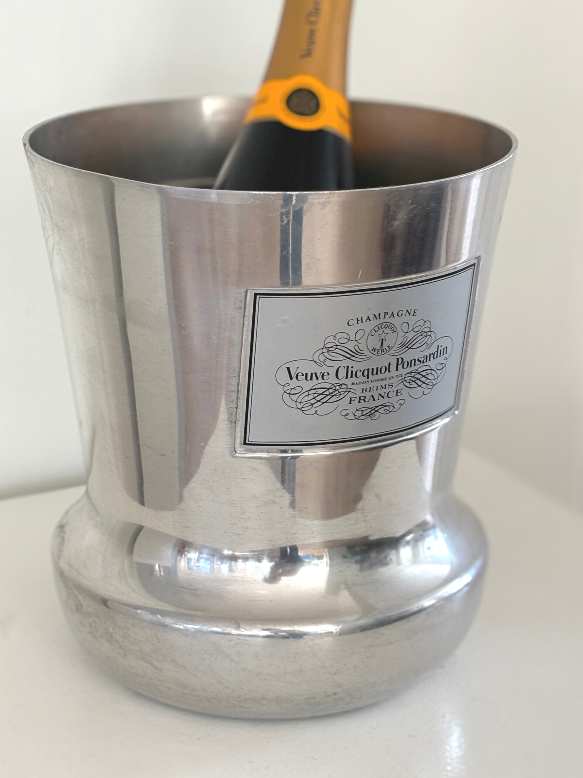 Champagnekoeler van Veuve Clicquot Ponsardin France. Een echte blikvanger met stijlvolle uitstraling. Afmetingen: 21,5 x 19 cm.