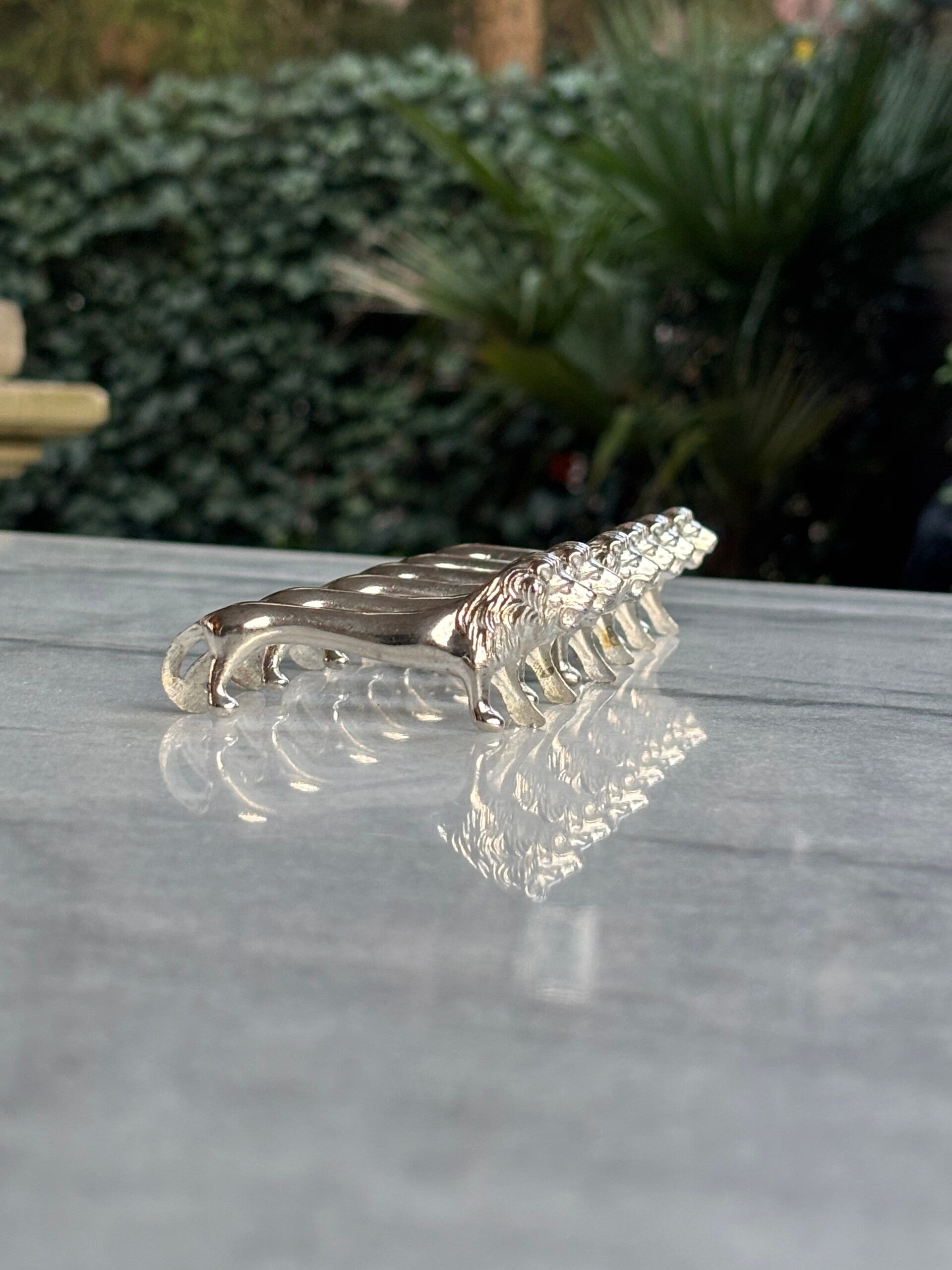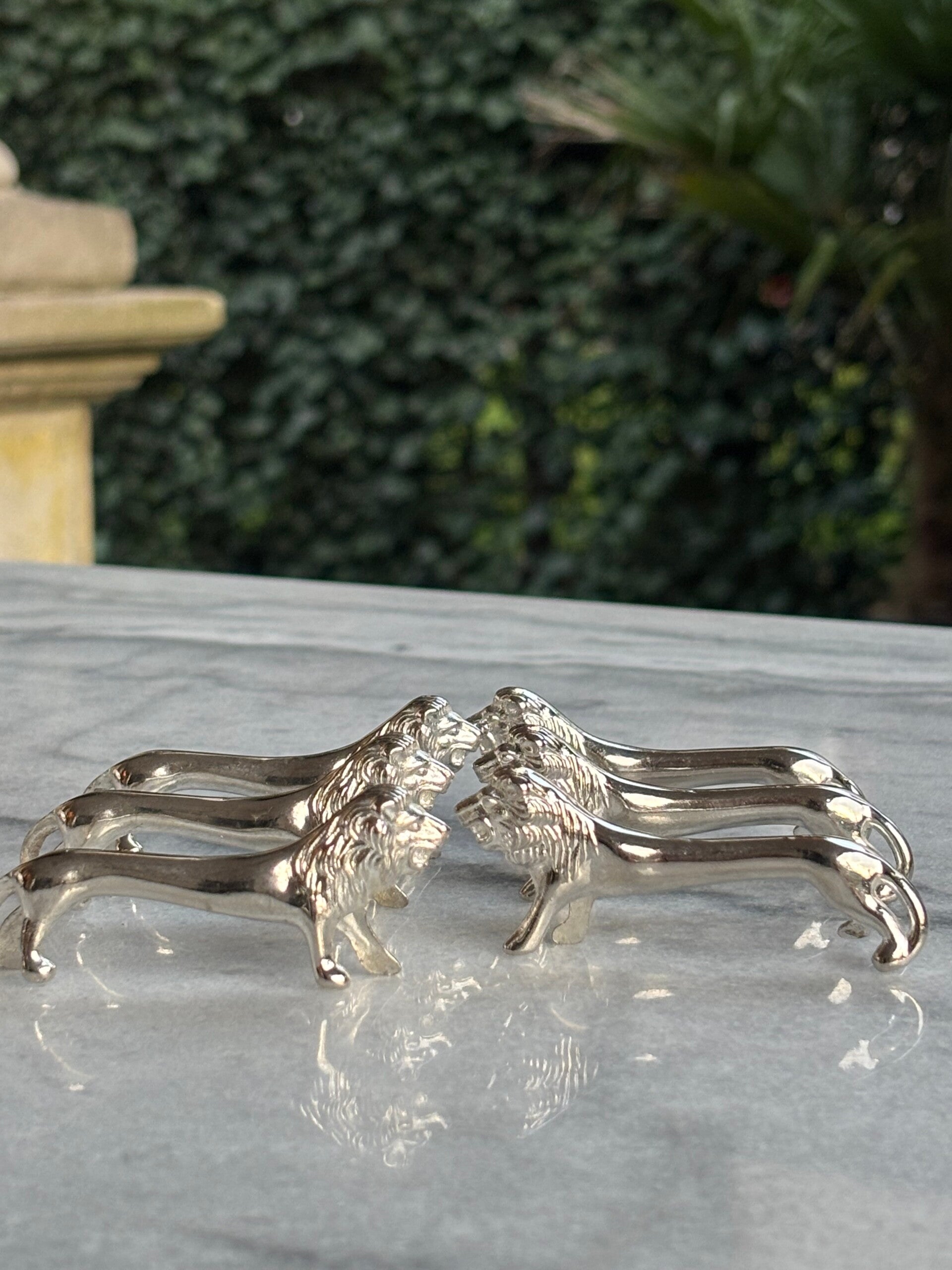 6 Verzilverde messenleggers 'leeuw'.