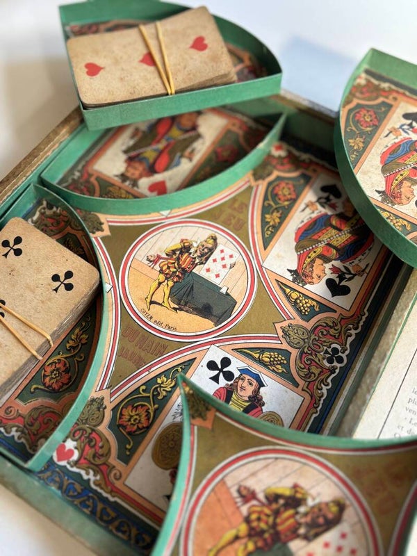 Bijzonder spel uit ca. 1885: Le Jeu du Main Jaune, Coyen Edit Paris. Een charmant en zeldzaam decoratief item voor de liefhebber van antieke spellen en Franse curiosa. Afmetingen: 26,5 x 22 cm.