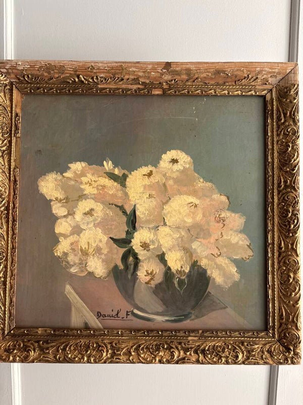 Elegant antique French painting with charm and character. Signed at the lower side. A timeless decorative piece for both classic and modern interiors. Dimensions: 38 x 36,5 cm.