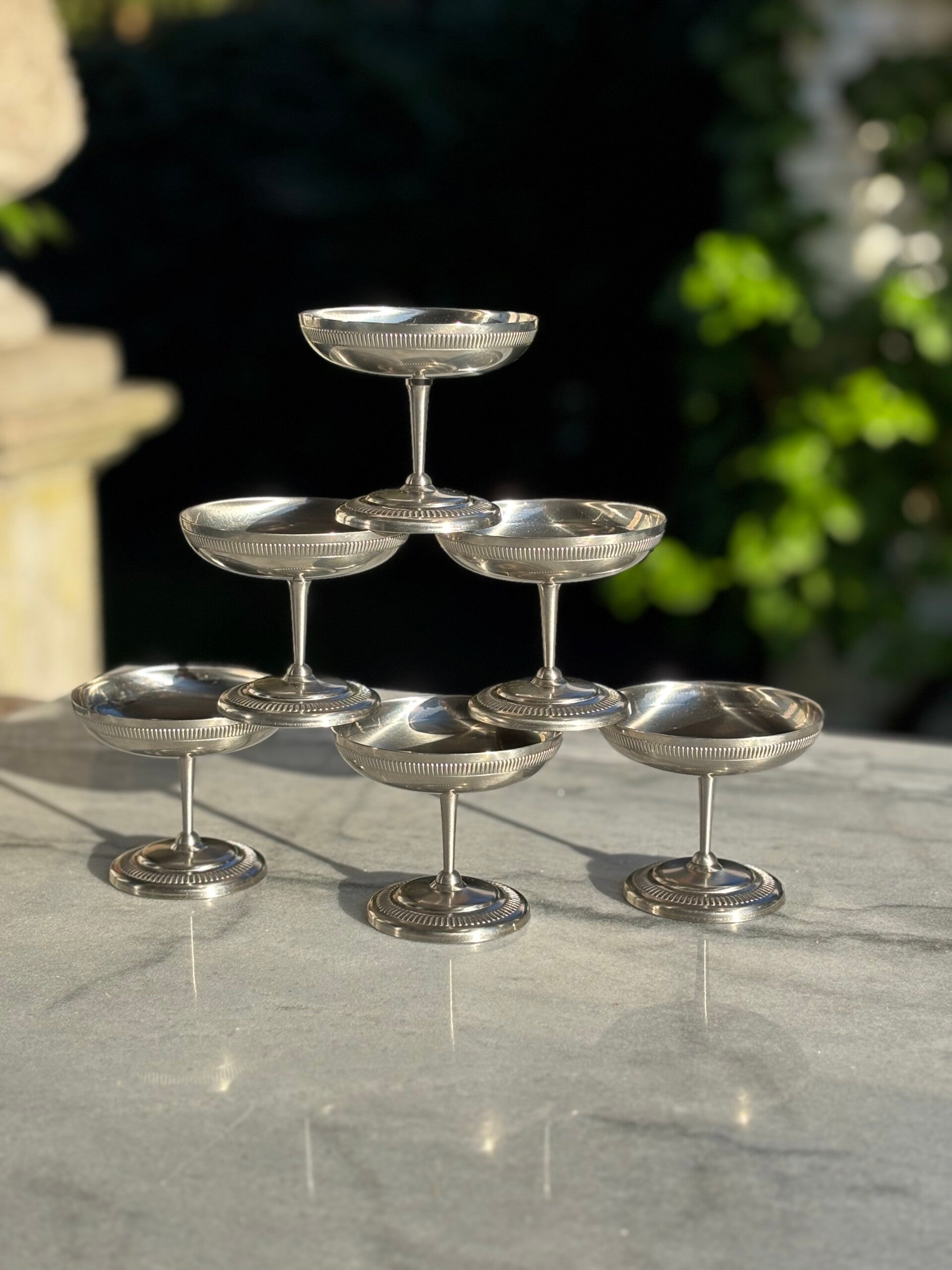 An elegant set of 6 vintage dessert coupes by Jean Couzon. Timeless French design for a refined table setting.